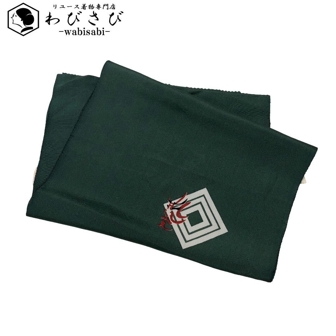 和装小物 帯揚げ 正絹 隈取り 縮緬 黒木賊色 C-6182 着物 きもの kimono 和服 和装 中古 リサイクル着物 【送料無料】