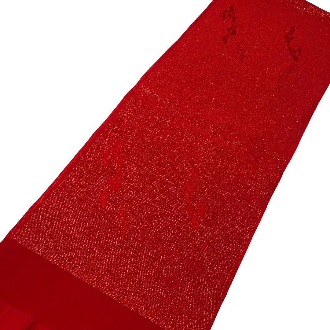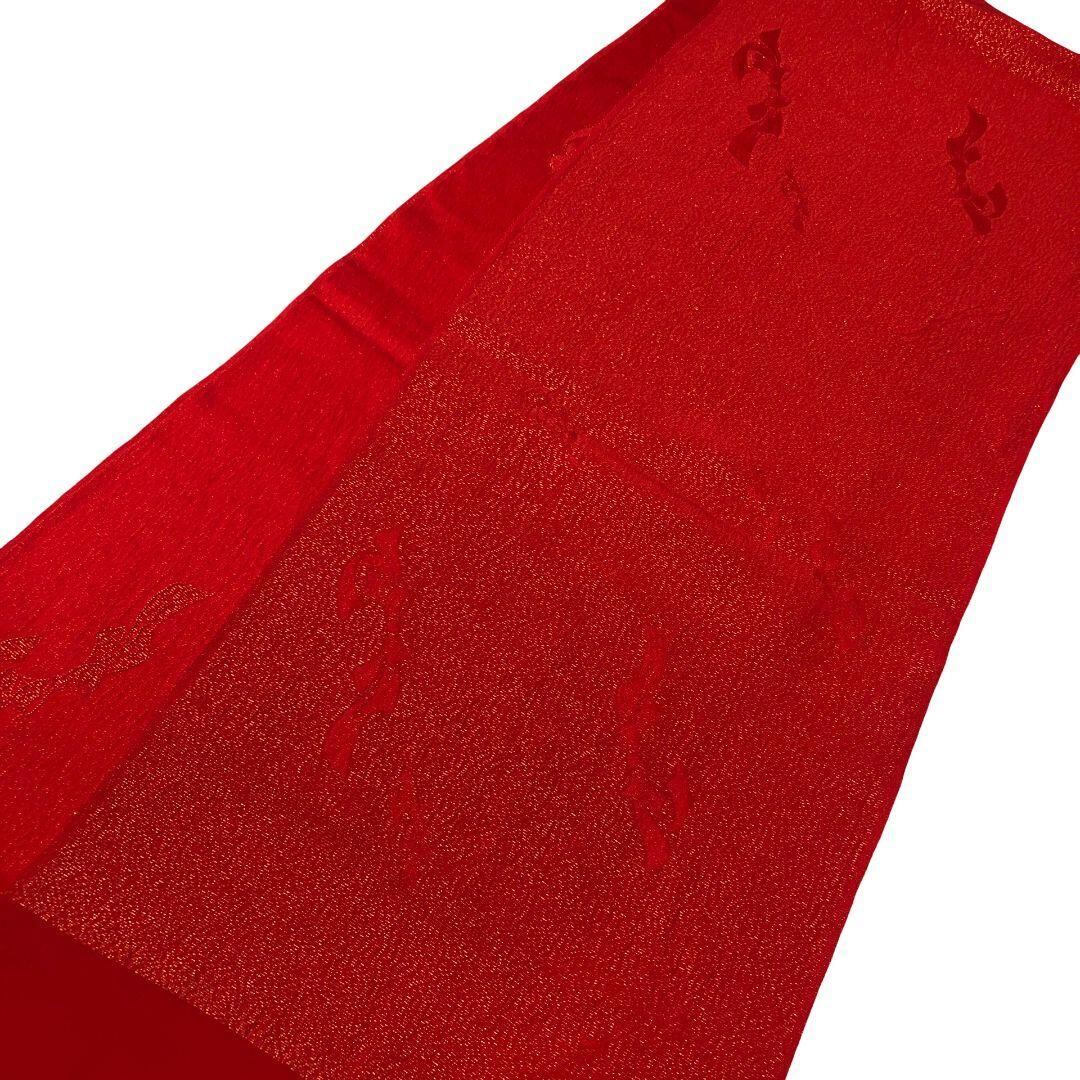 和装小物 帯揚げ 正絹 桂由美 抽象模様 赤色 金糸 C-6183 着物 きもの kimono 和服 和装 中古 リサイクル着物 【送料無料】