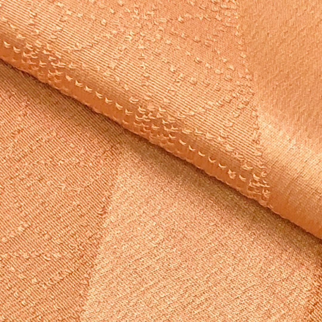 柿色のお色味に斜線に麻の葉模様の柄裄がデザインされた素敵なお品でございます。