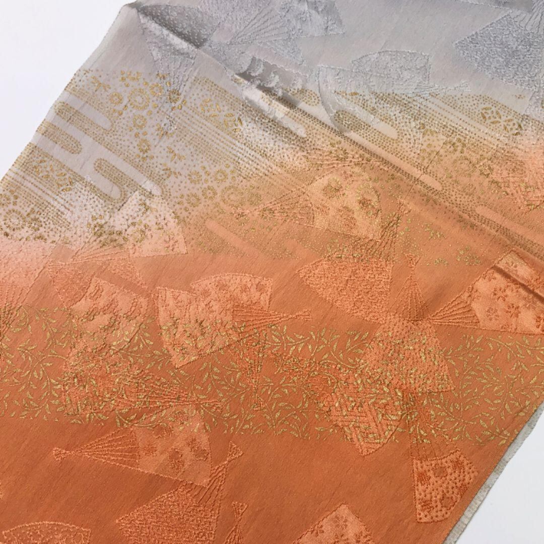 和装小物 帯揚げ 正絹 綸子 扇子にエ霞 花模様 緋褪色 C-6186 着物 きもの kimono 和服 和装 中古 リサイクル着物 【送料無料】