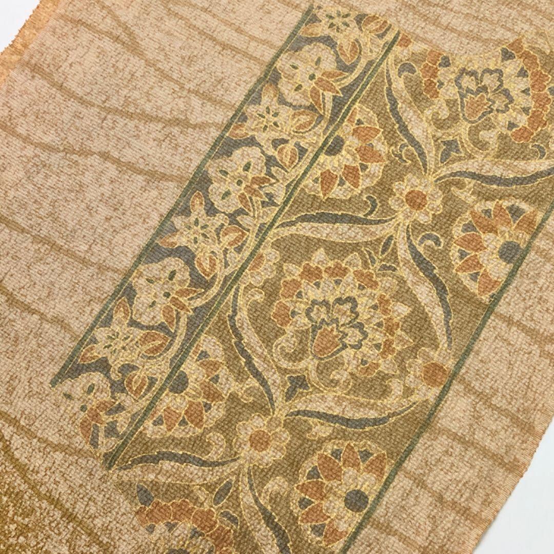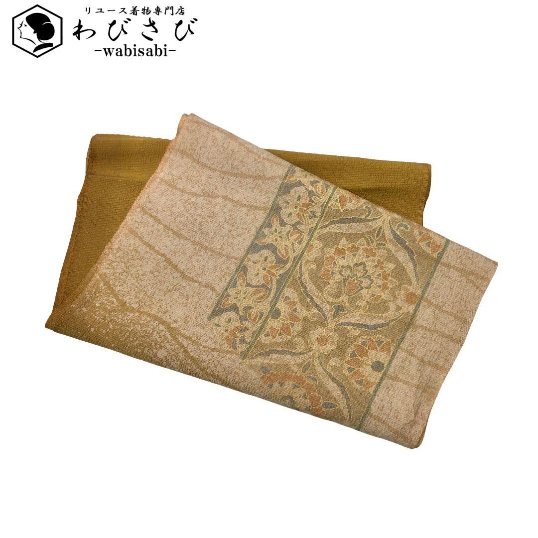和装小物 帯揚げ 正絹 作家物 抽象華模様 縮緬 黄土色 C-6187 着物 きもの kimono 和服 和装 中古 リサイクル着物 【送料無料】