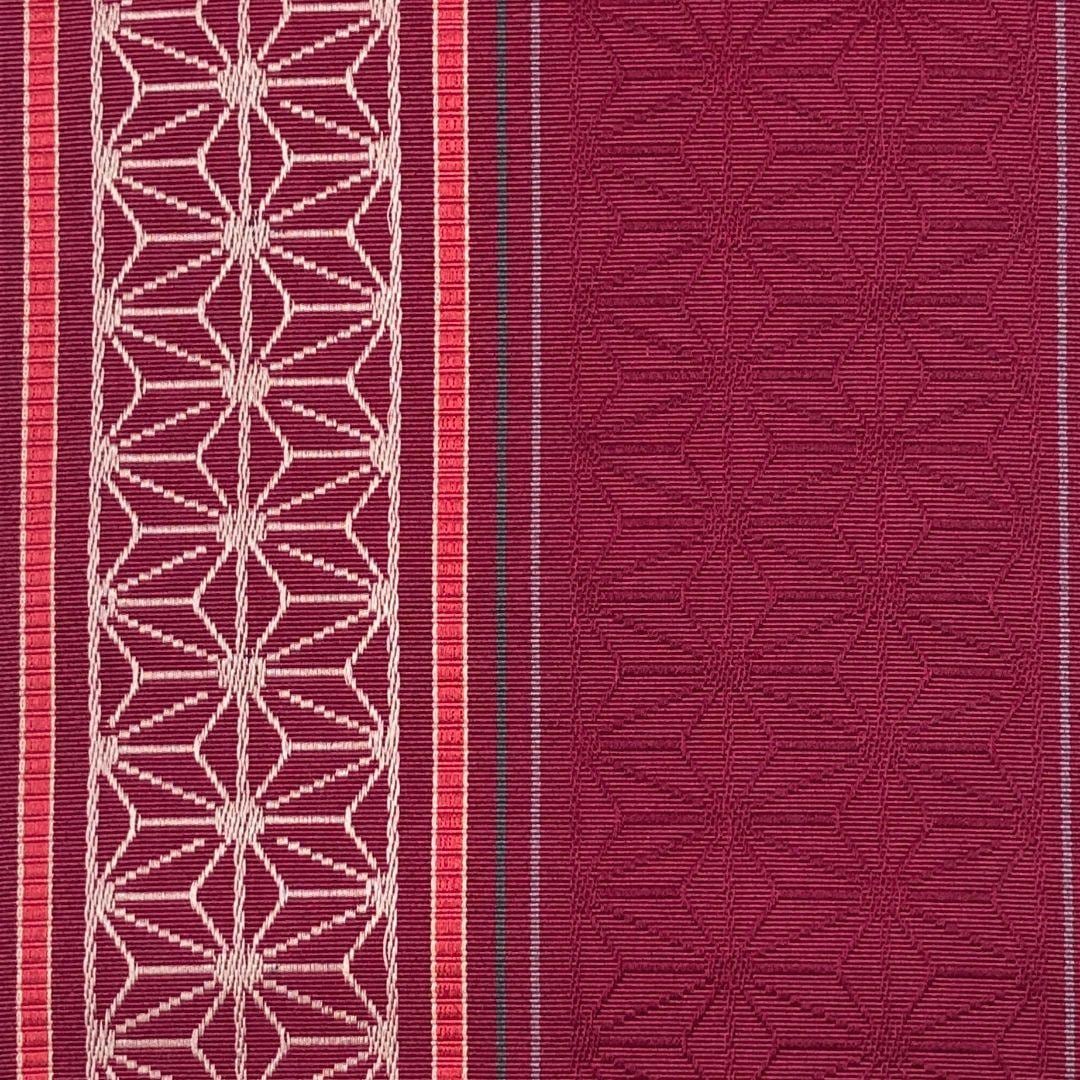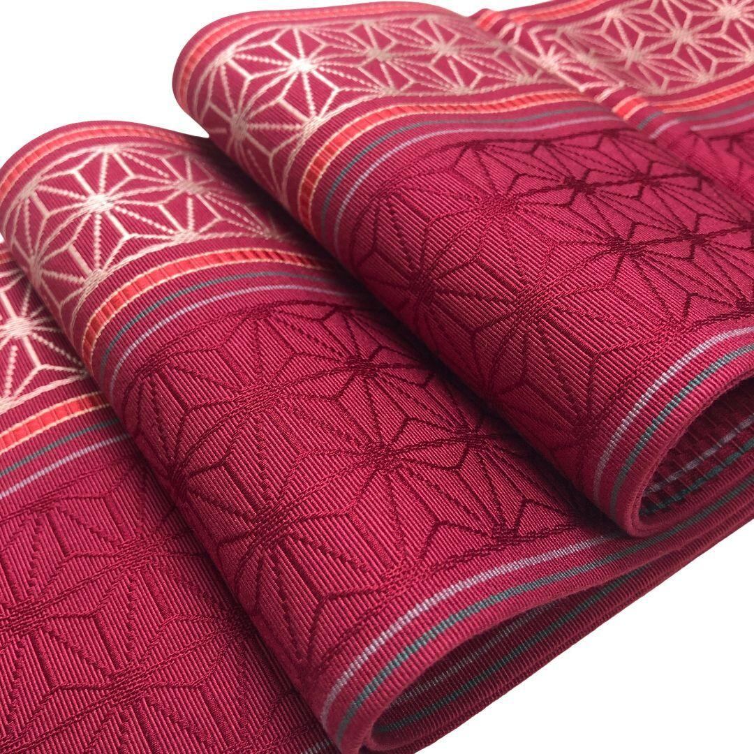 半幅帯 本場筑前博多織 麻の葉模様 赤石脂色 D-2082 着物 きもの kimono 和服 和装 中古 リサイクル着物 【送料無料】
