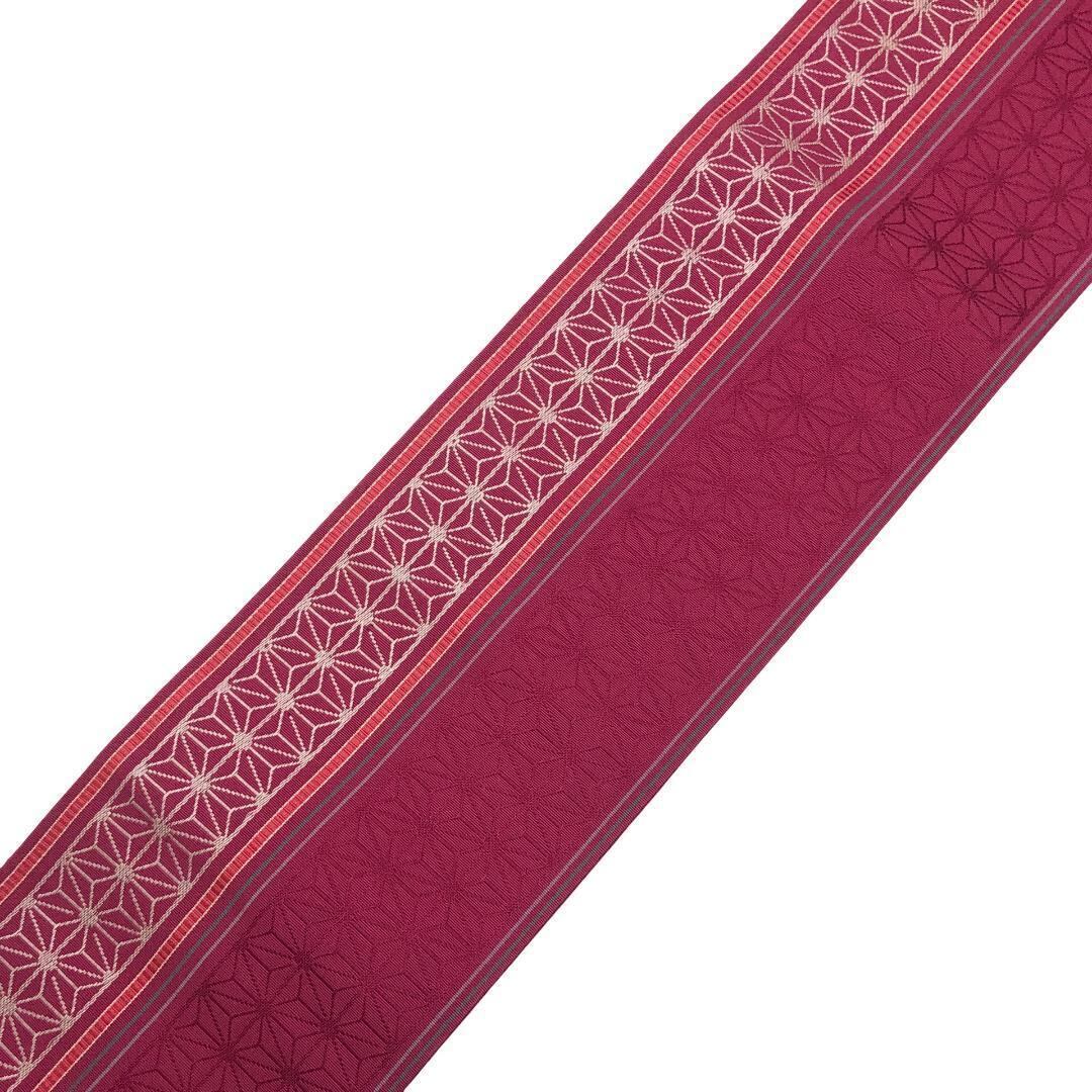赤石脂色のお色味に麻の葉模様の柄裄がデザインされた素敵なお品でございます。