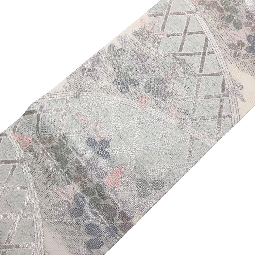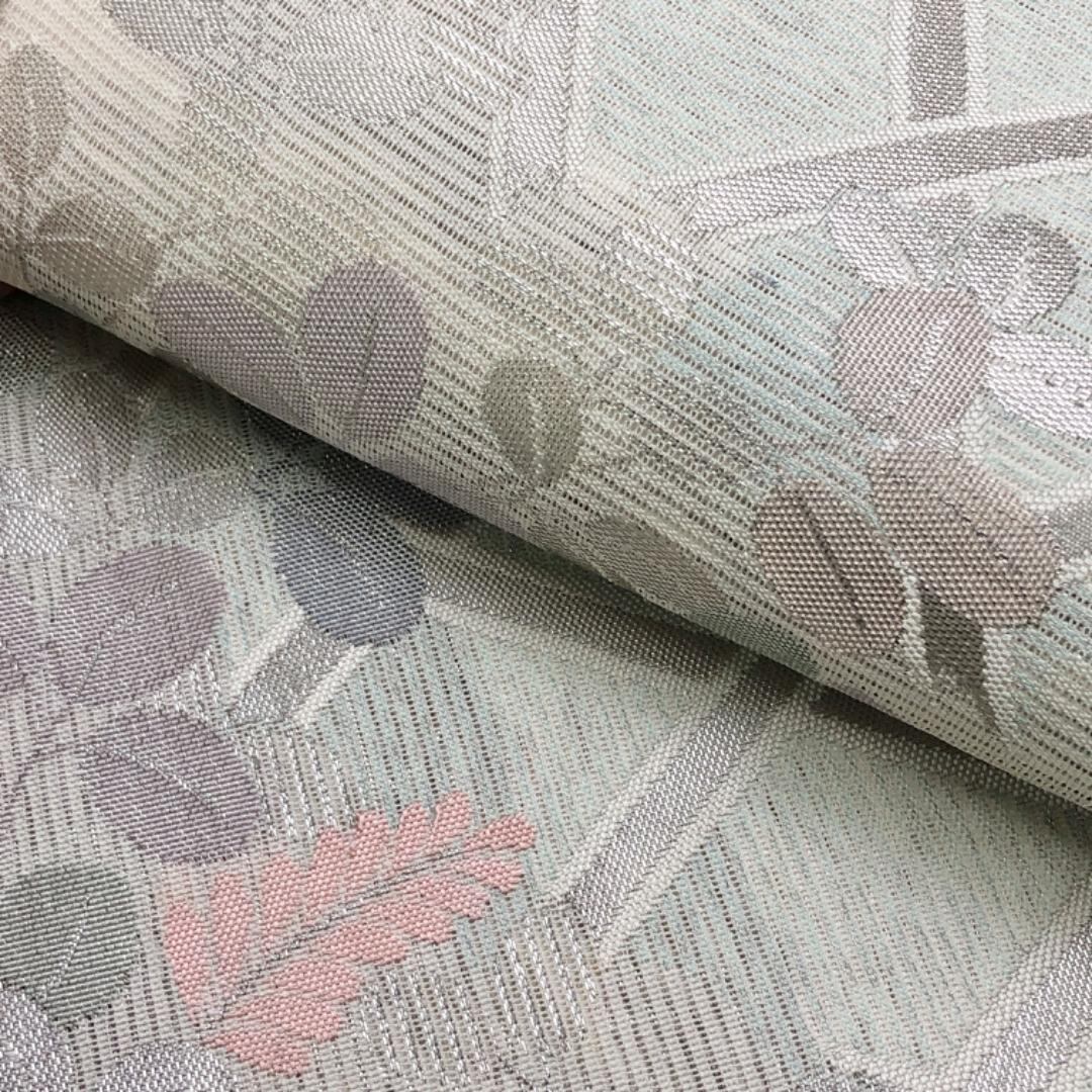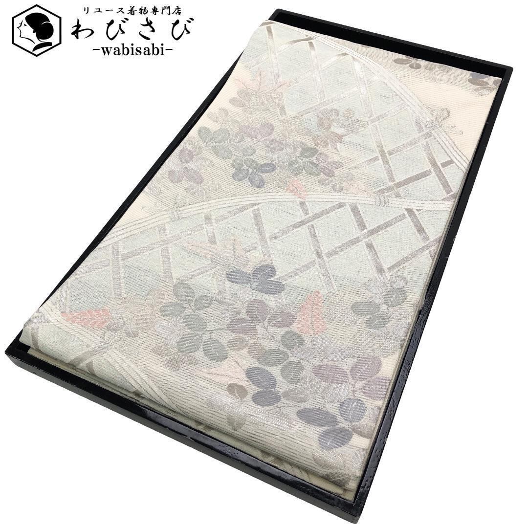 乳白色の上品なお色味に竹垣に萩の花模様の柄裄がデザインされた涼しげで素敵なお品でございます。
