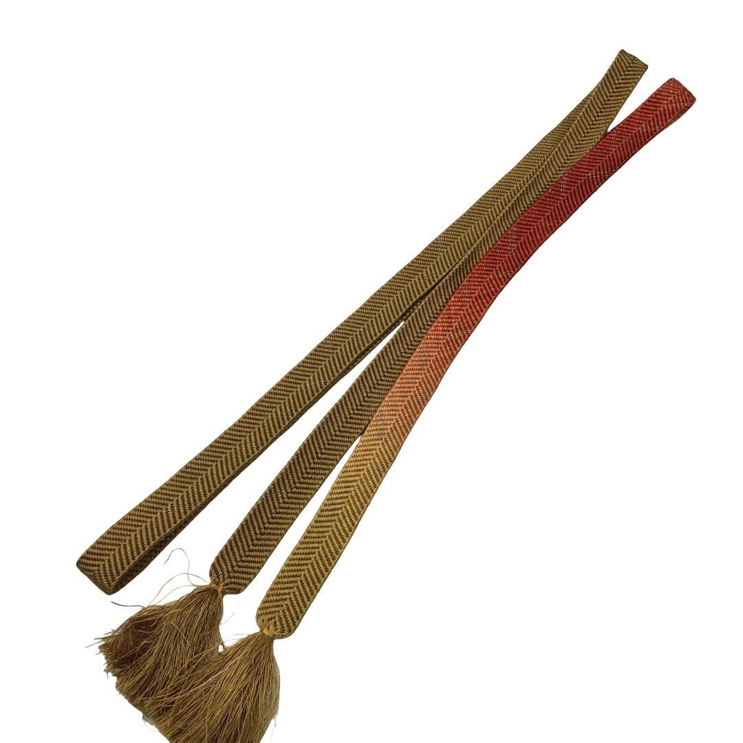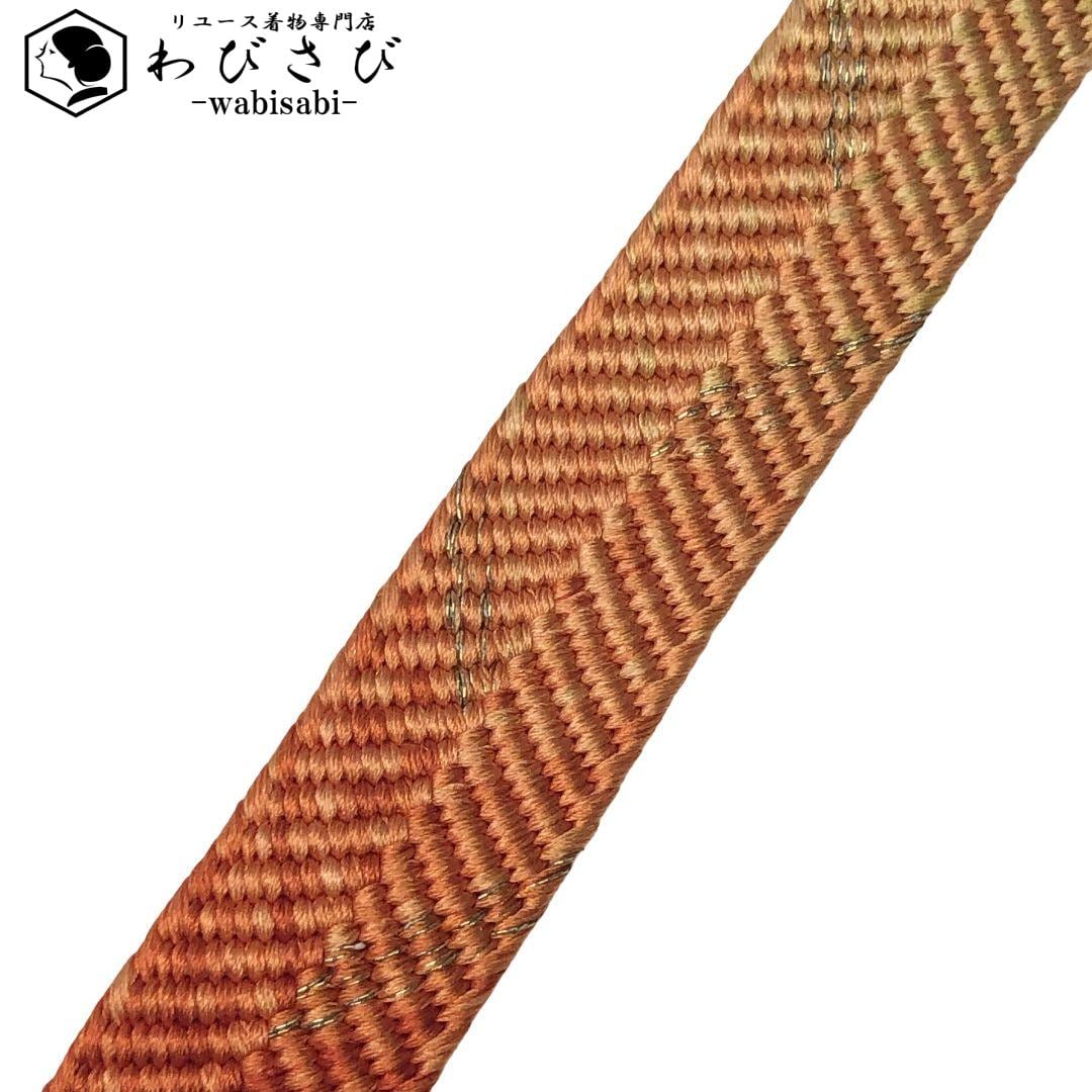和装小物 帯締め 正絹 笹浪組 平組紐 組紐 黄土色 金糸 C-6210 着物 きもの kimono 和服 和装 中古 リサイクル着物 【送料無料】