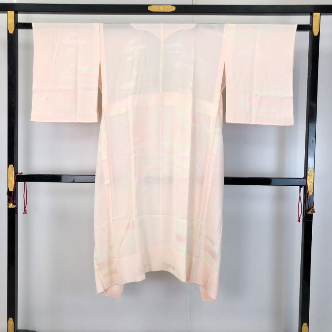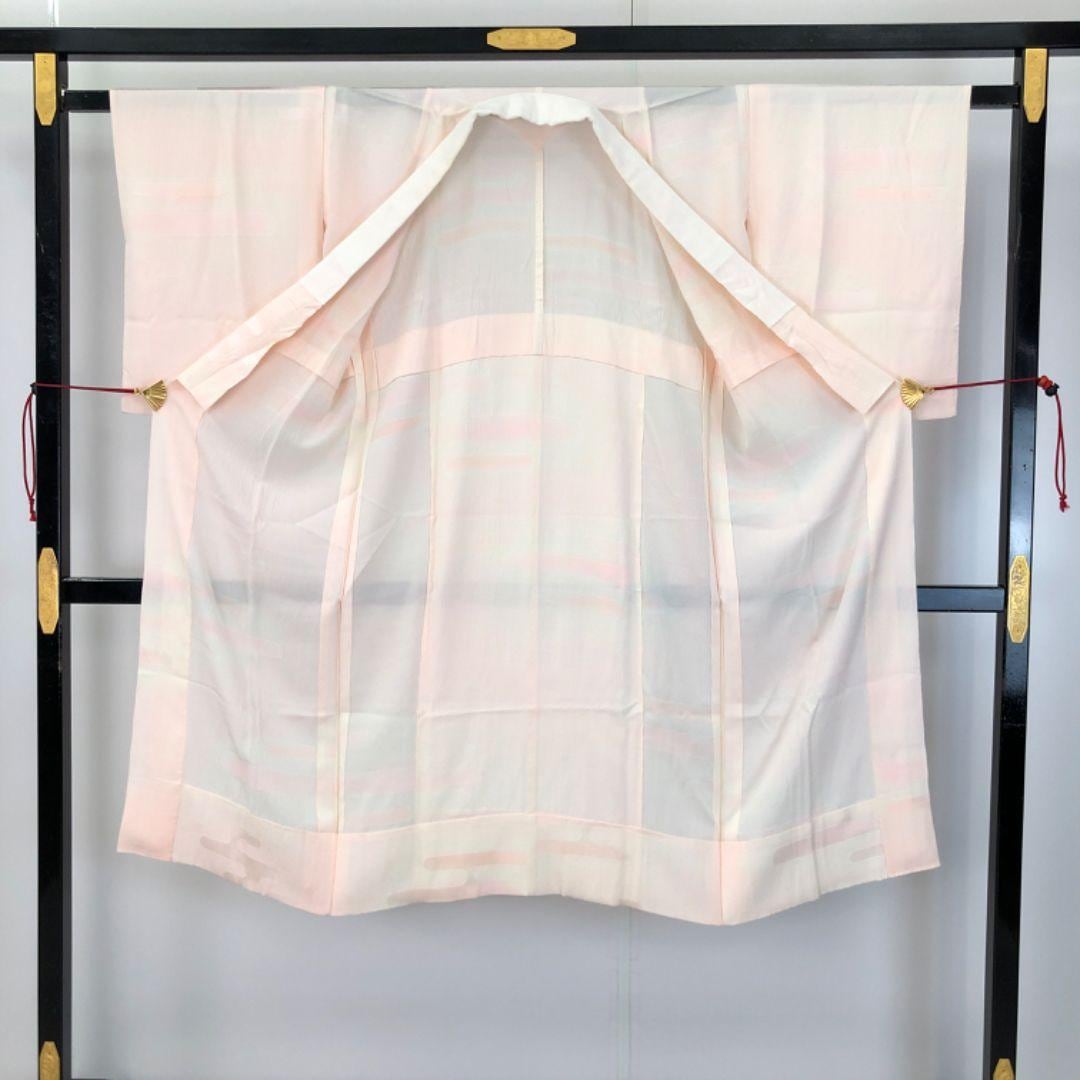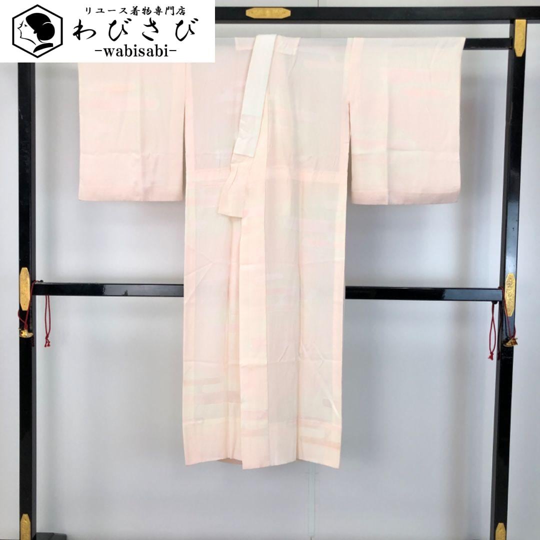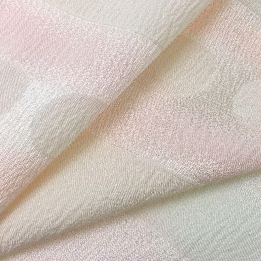 乙女色のお色味に霞模様の柄裄がデザインされた素敵なお品でございます。