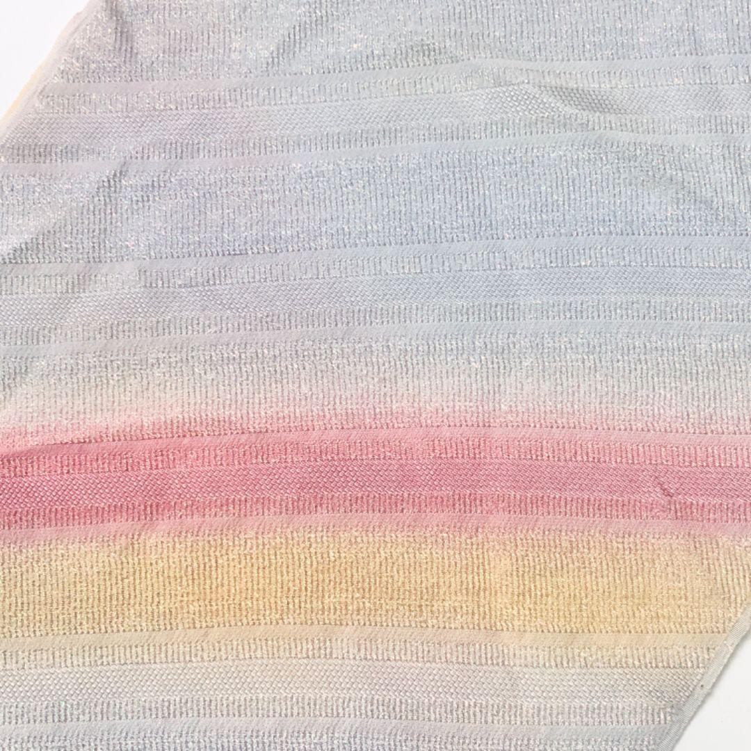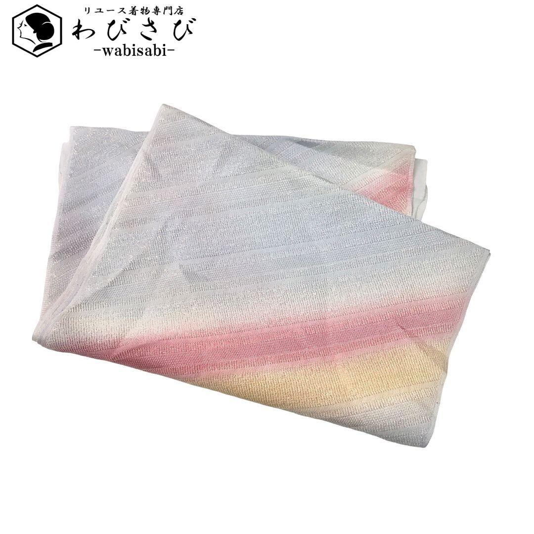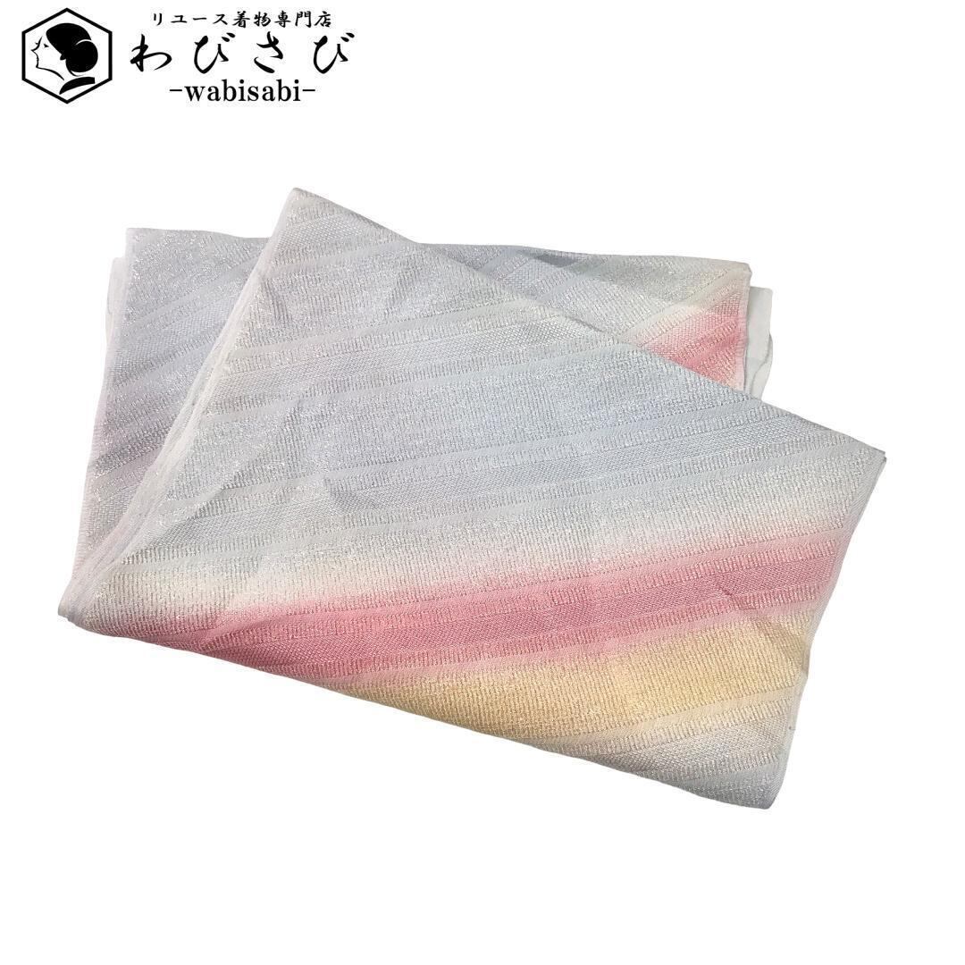 蒼白色ベースのグラデーションのお色味に斜線の柄裄がデザインされた素敵なお品でございます。