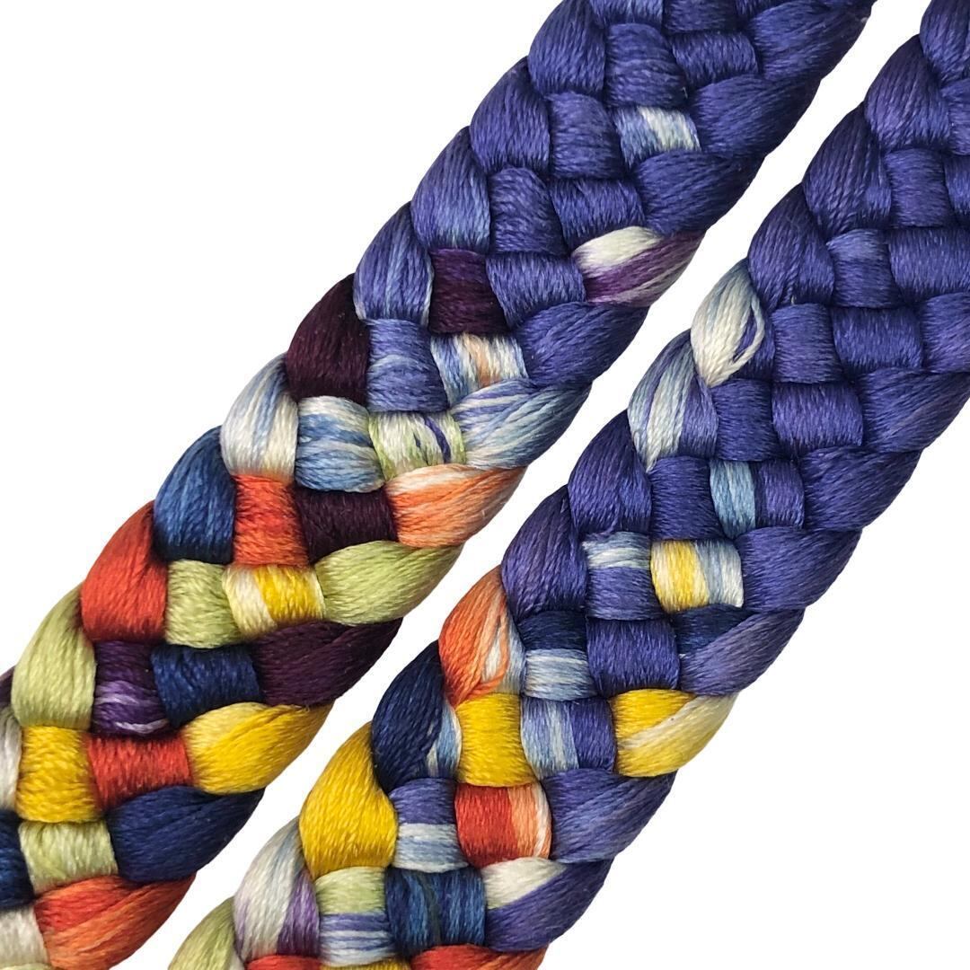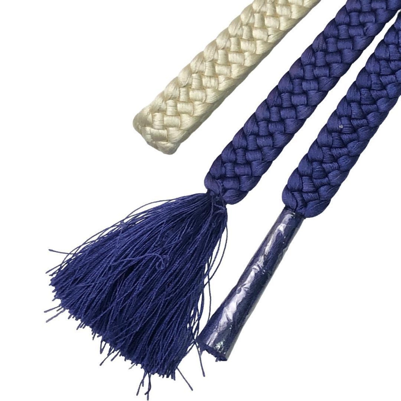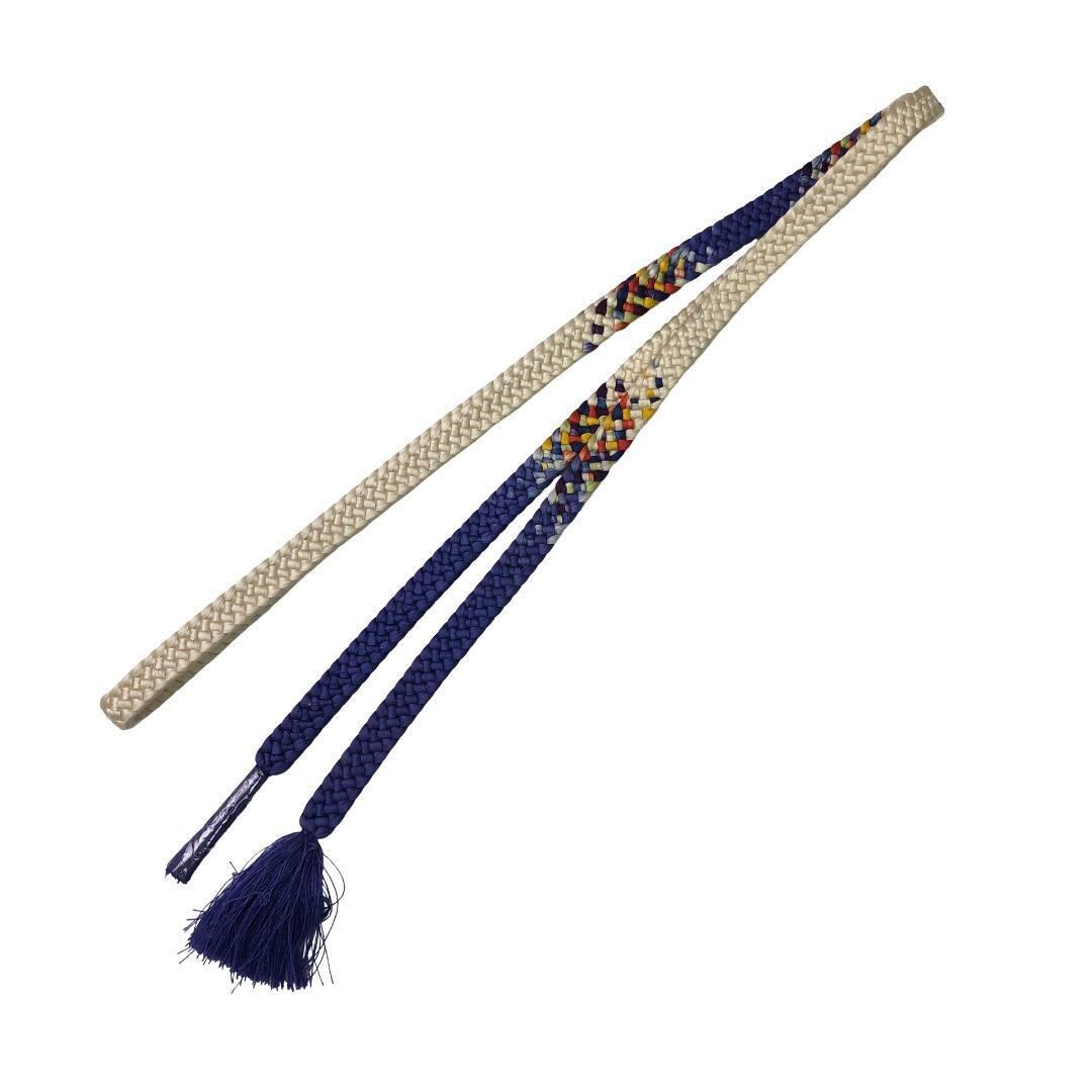 二藍色に乳白色のお色味が素敵な平組紐のお品でございます。