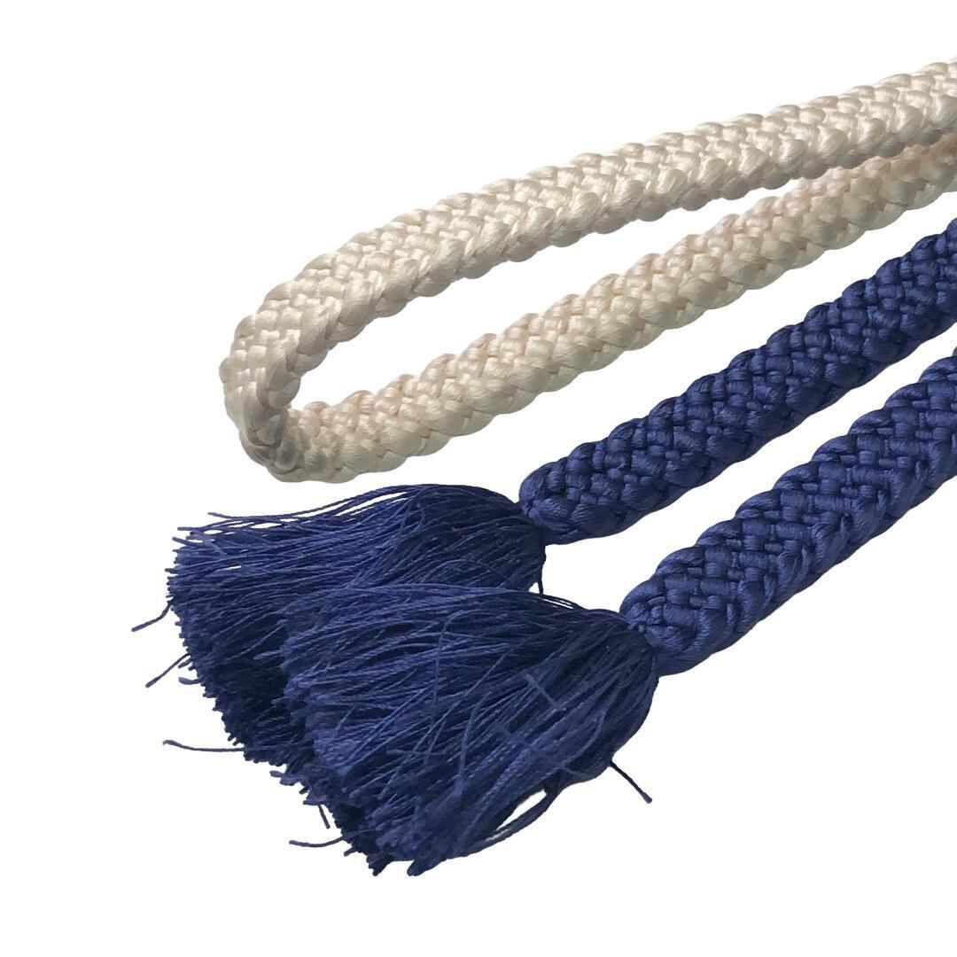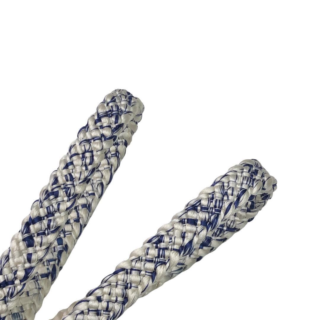紺桔梗色と乳白色のお色味が素敵な平組紐のお品でございます。