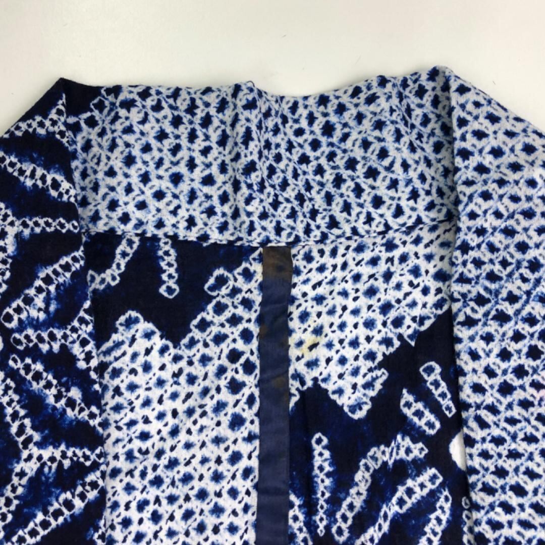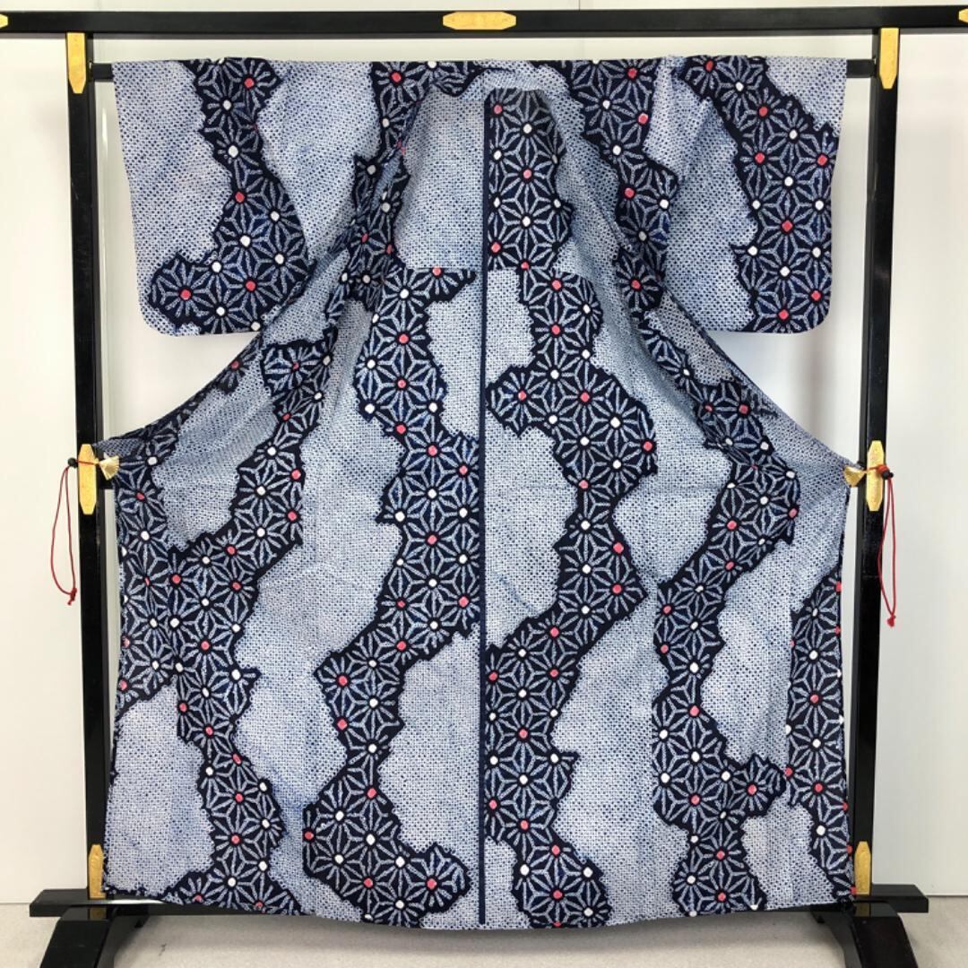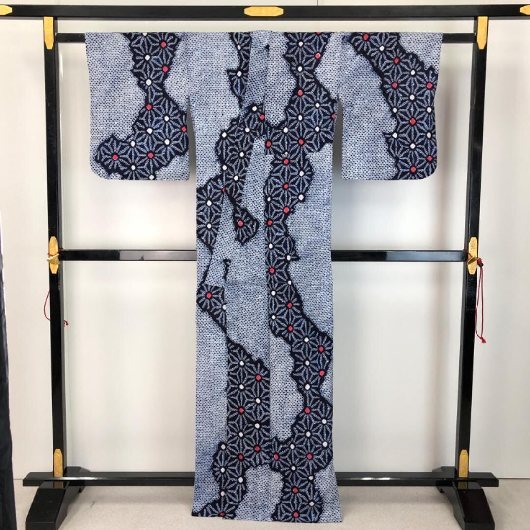 夏着物 浴衣 有松鳴海本絞り 麻の葉模様 藍色 K-5179 着物 きもの kimono 和服 和装 中古 リサイクル着物 【送料無料】