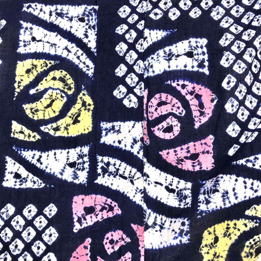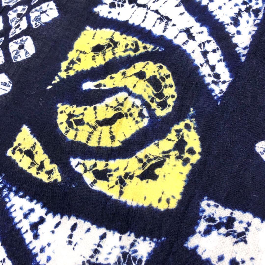 夏着物 浴衣 有松鳴海本絞り 長方形に抽象花模様 紺鉄色 K-5144 着物 きもの kimono 和服 和装 中古 リサイクル着物 【送料無料】