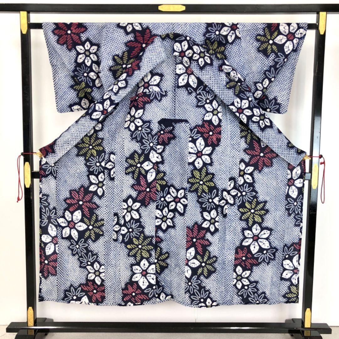 夏着物 浴衣 有松鳴海本絞り 花柄模様 紺藍色 K-5146 着物 きもの kimono 和服 和装 中古 リサイクル着物 【送料無料】