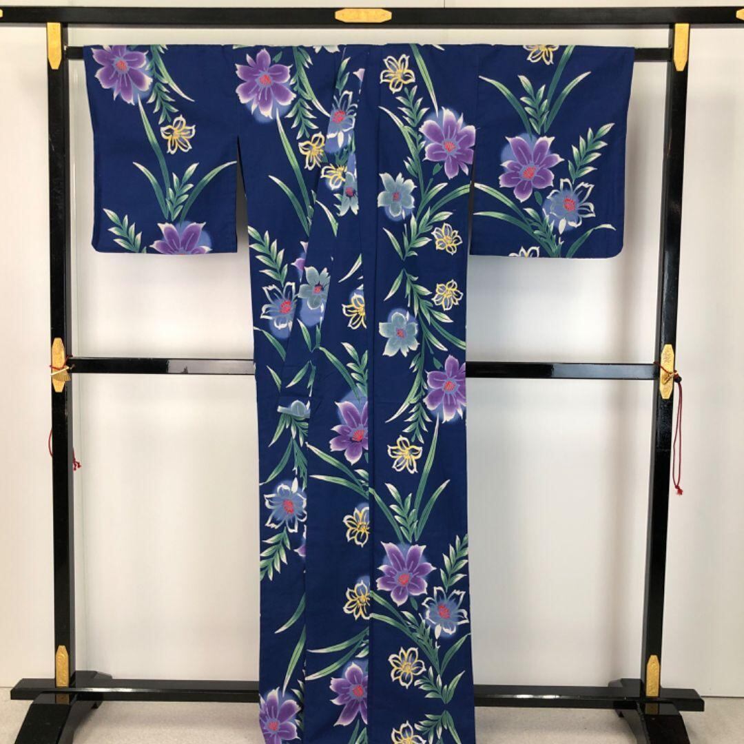 夏着物 浴衣 美しい花模様 濃桔梗色 K-5178 着物 きもの kimono 和服 和装 中古 リサイクル着物 【送料無料】