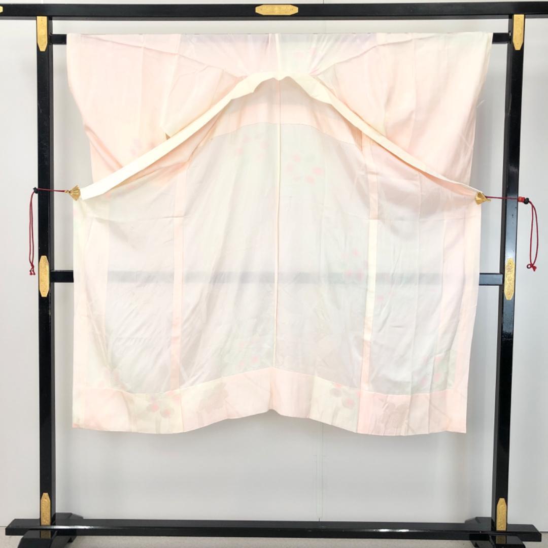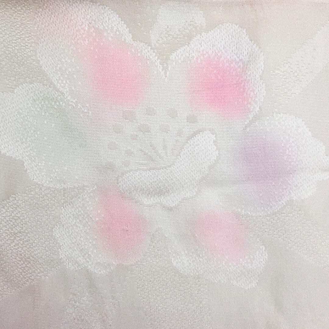 乙女色のお色味に花模様がデザインされた素敵な柄裄のお品でございます。