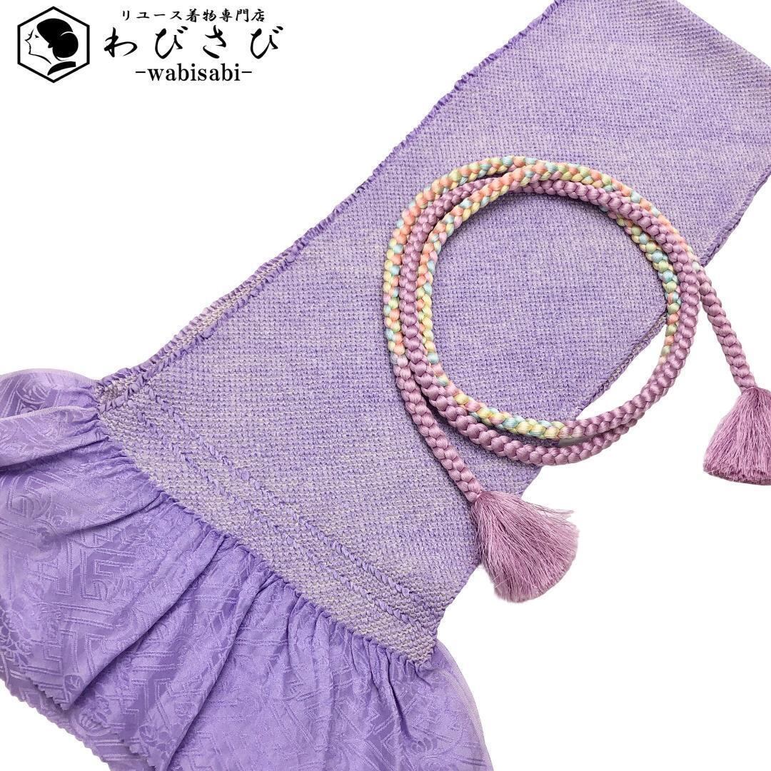 藤色ベースの総絞りの帯揚げにパステルカラーのお色味の帯締めが素敵なお品でございます。