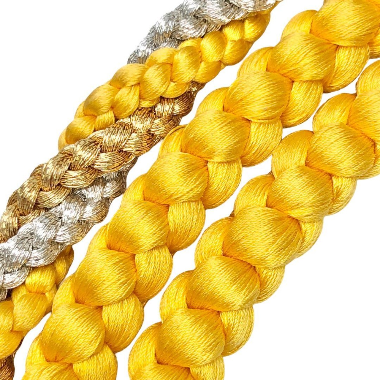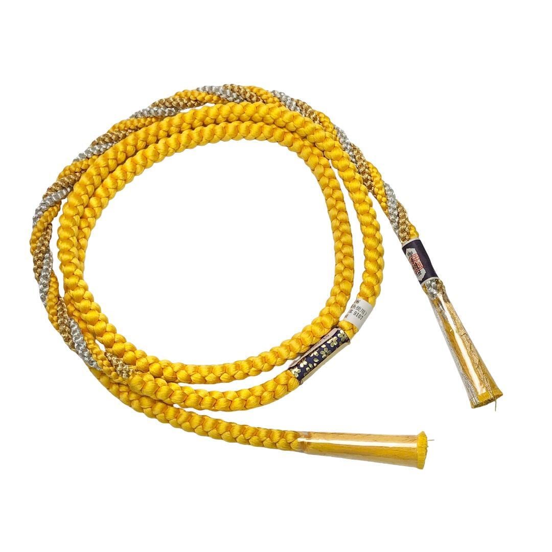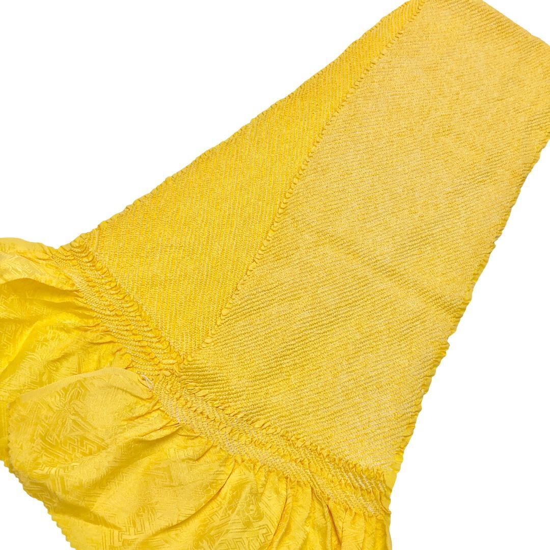 黄色の総絞りの帯揚げに金銀糸が使用された帯締めの素敵なお品でございます。