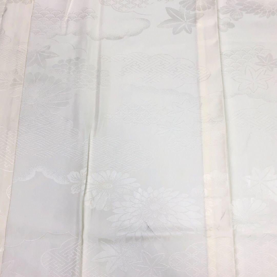 長襦袢 単衣 花草模様 雲柄に紗綾形 青海波 淡黄蘗色 J-314 着物 きもの kimono 和服 和装 中古 リサイクル着物 【送料無料】