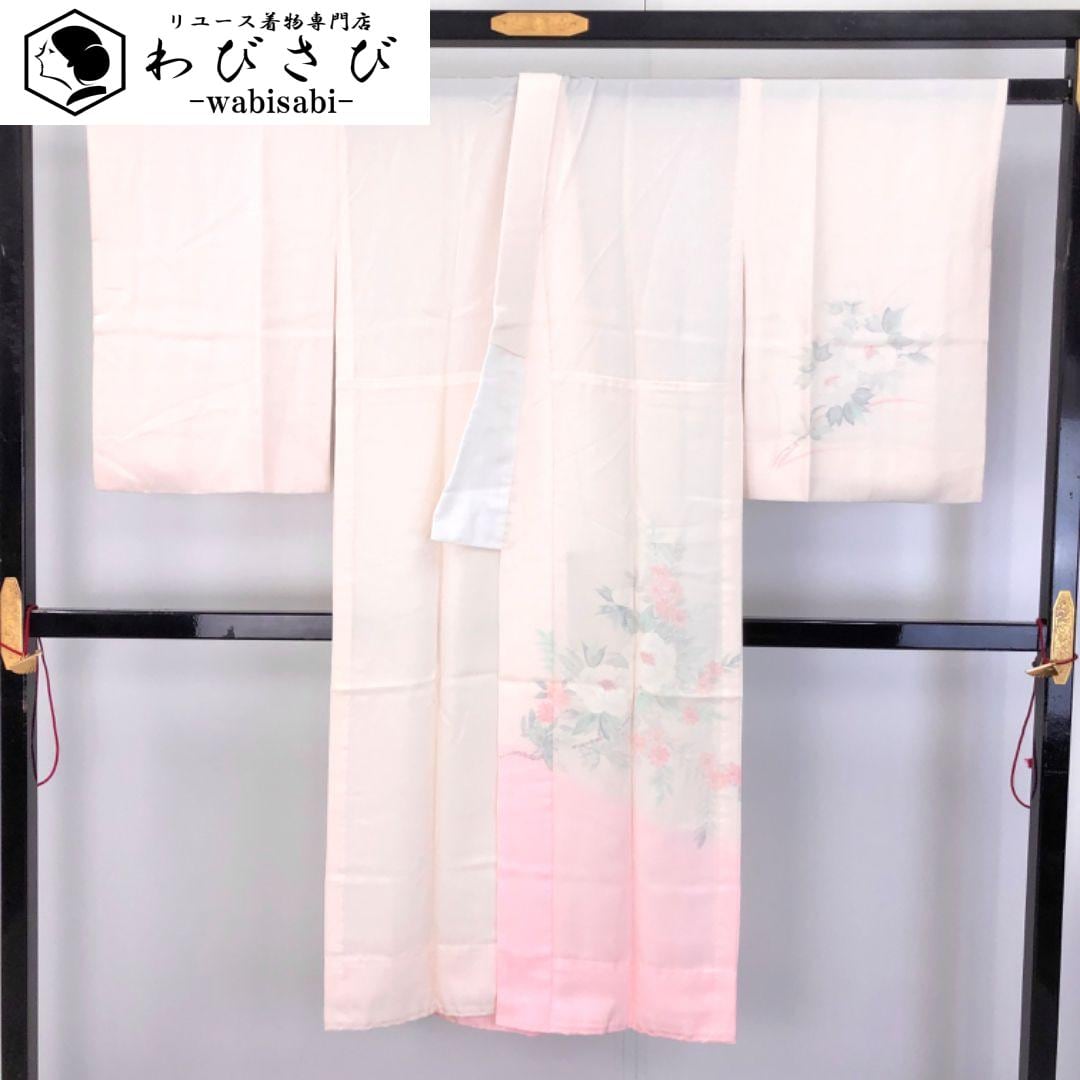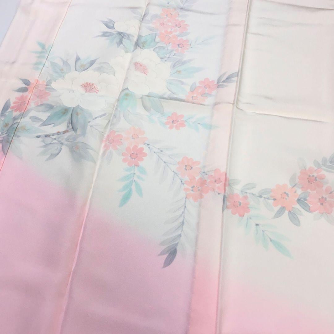 薄桜色のお色味に暈しに牡丹の花がデザインされた素敵なお品でございます。