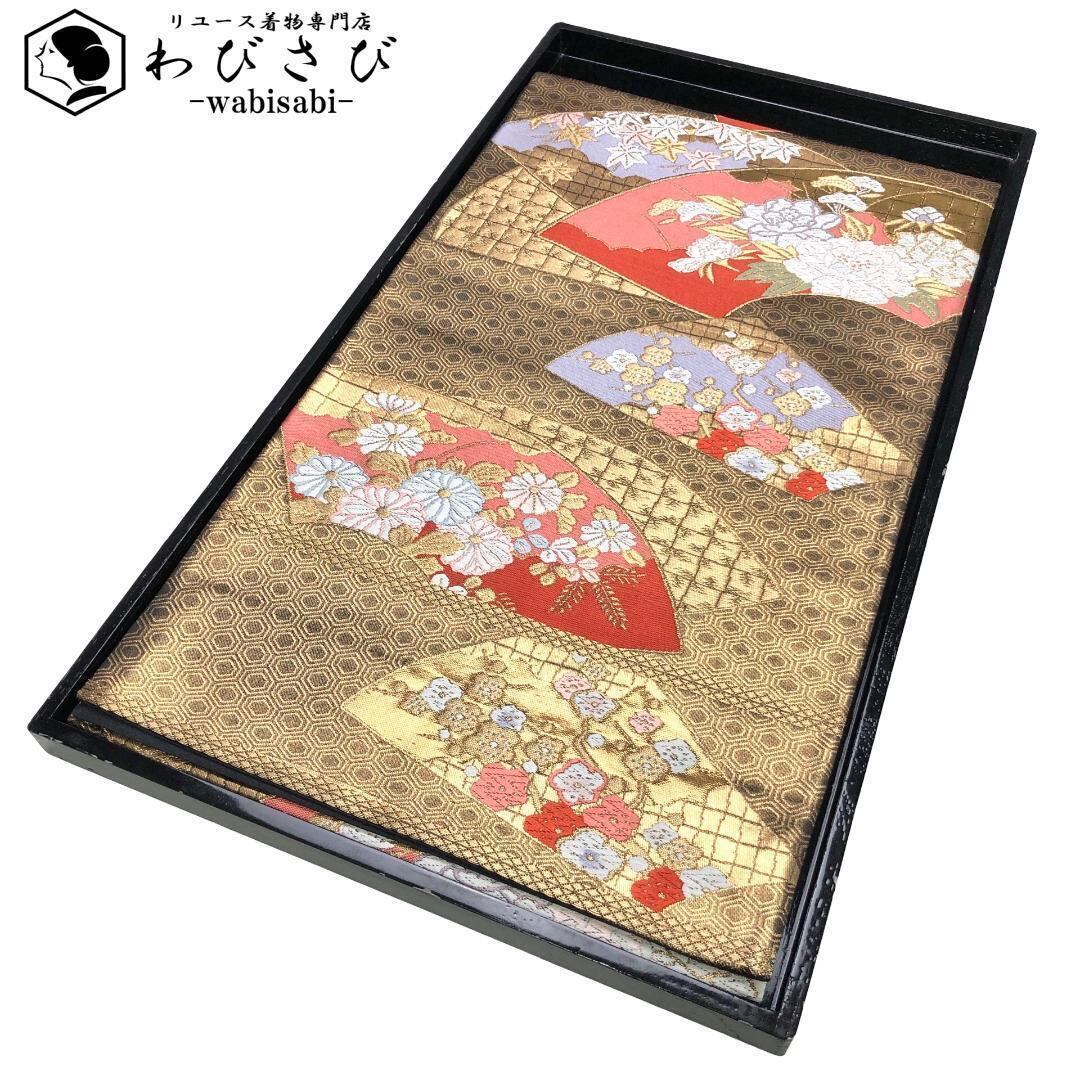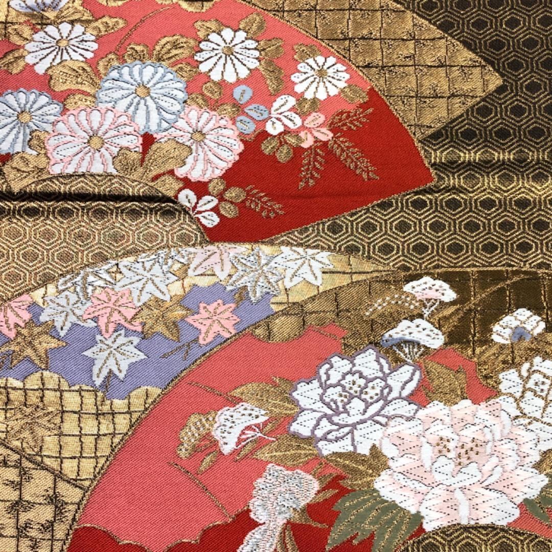 本金箔の金色のお色味に地紙に花模様がデザインされた素敵な柄裄のお品でございます。