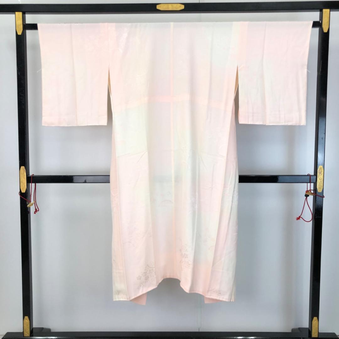 乙女色のお色味に竹垣に桔梗の花模様がデザインされた素敵な柄裄のお品でございます。