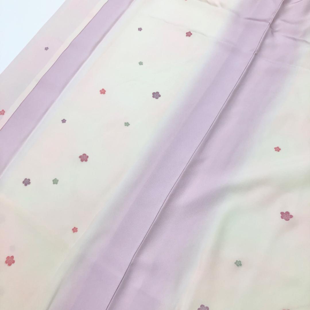 浅紫色ベースのお色味に縦縞模様に小花柄がデザインされた素敵なお品でございます。