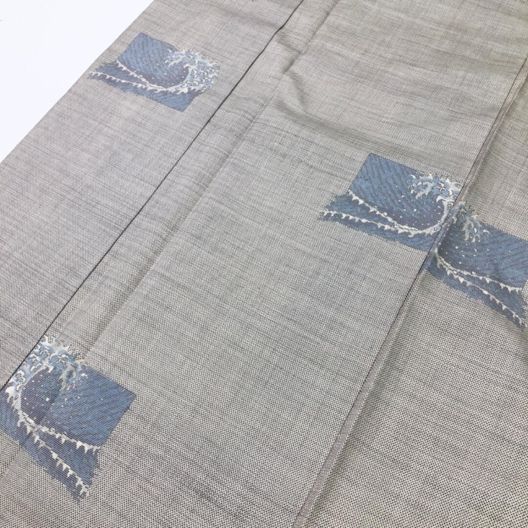砂色の上品なお色味に四角に波模様の柄裄がデザインされた素敵なお品でございます。