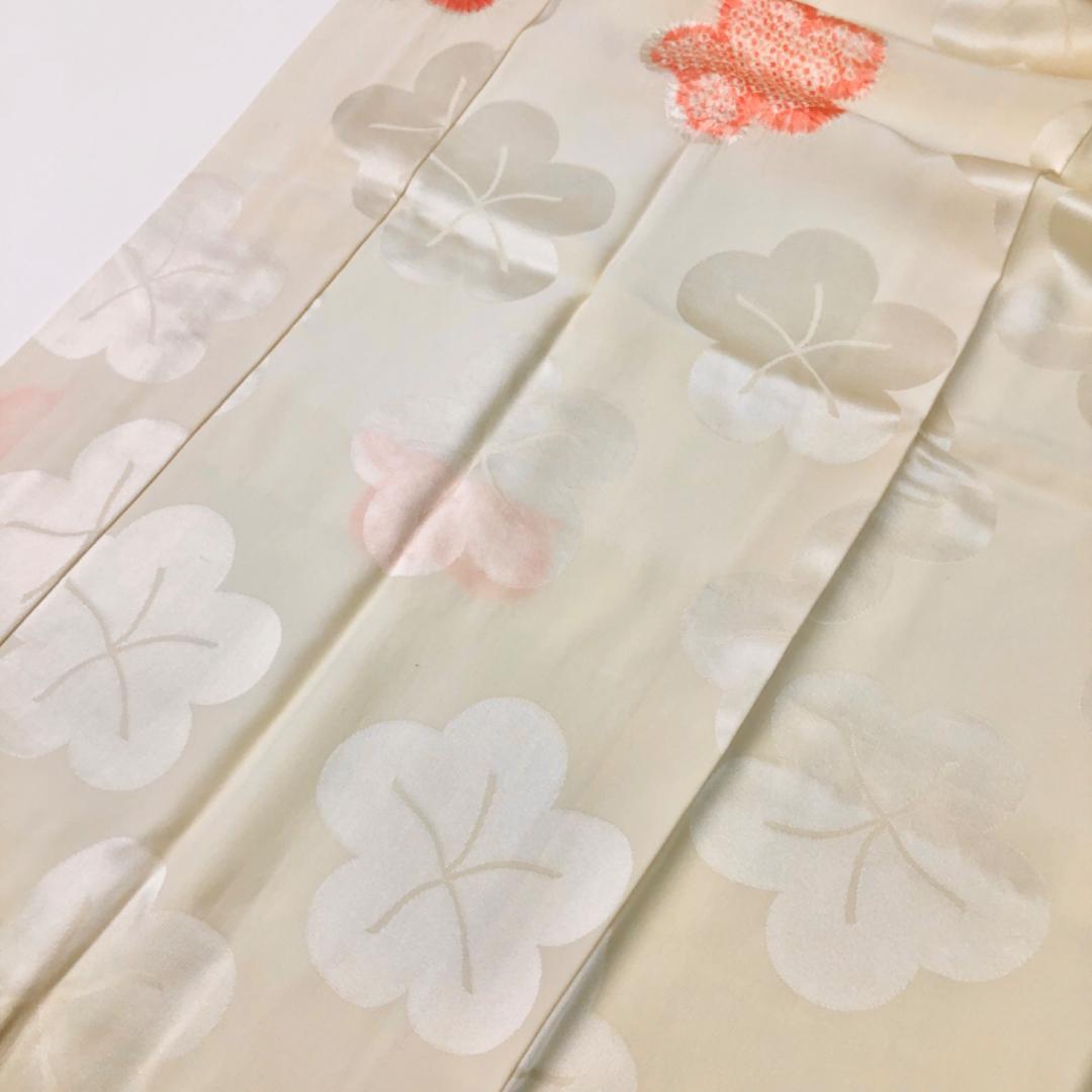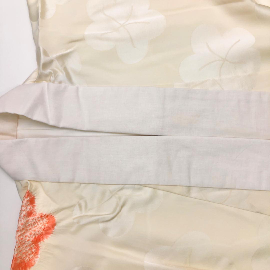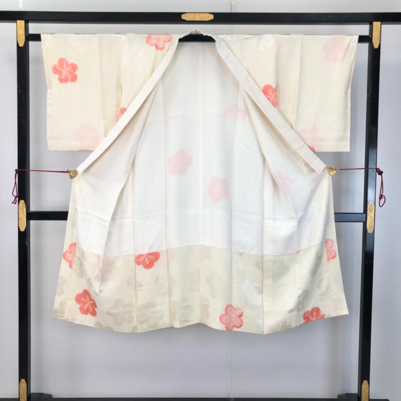 薄淡黄色のお色味に絞りの花模様の柄裄がデザインされた素敵なお品でございます。