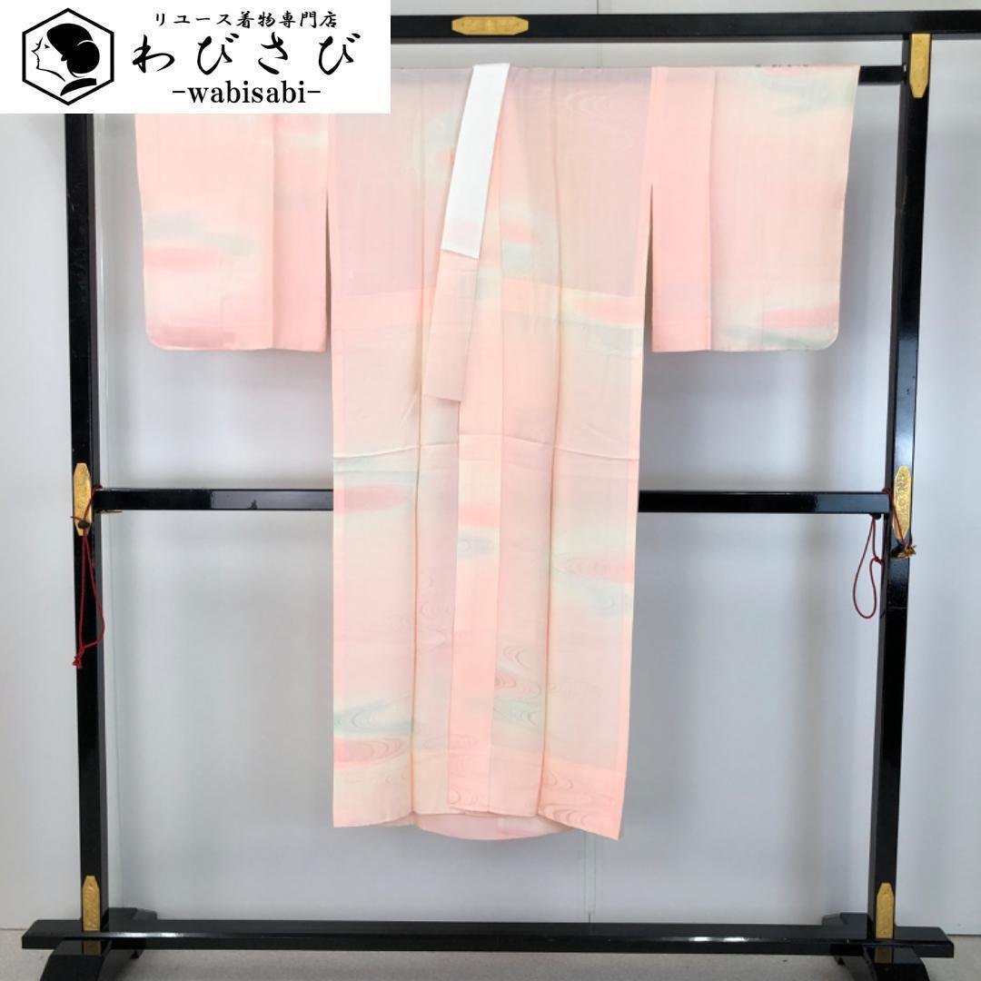 乙女色ベースのお色味に観世水の柄裄がデザインされた素敵なお品でございます。