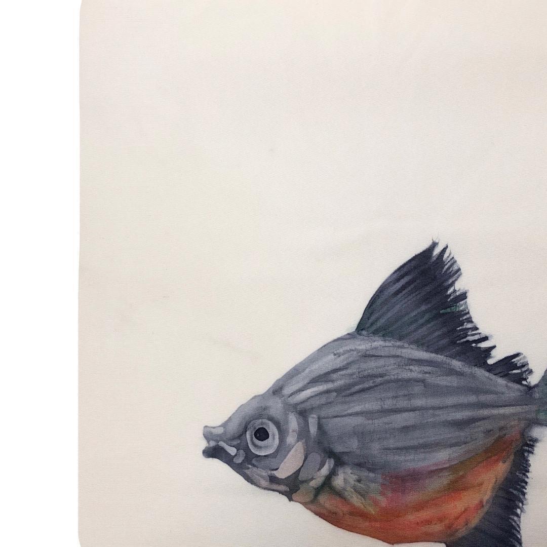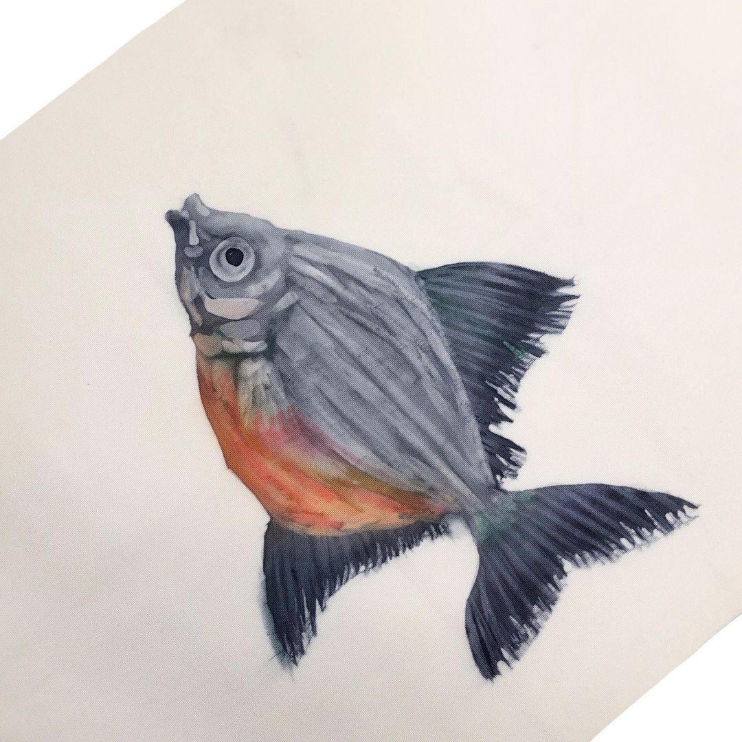 乳白色のお色味の塩瀬に手描きの魚柄がデザインされた素敵な柄裄のお品でございます。
