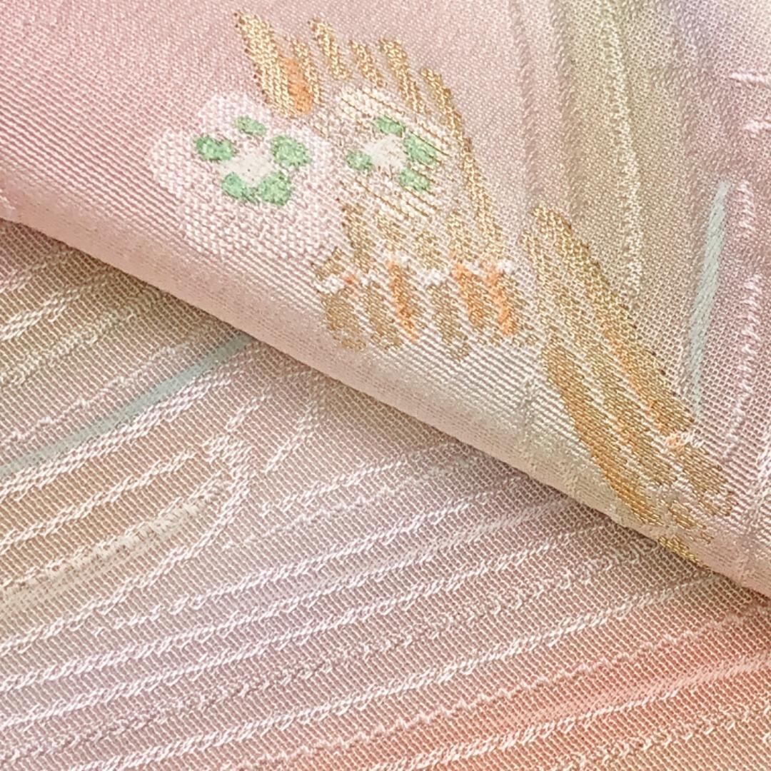 乙女色のお色味に経糸小石丸と題された素敵なお品でございます。