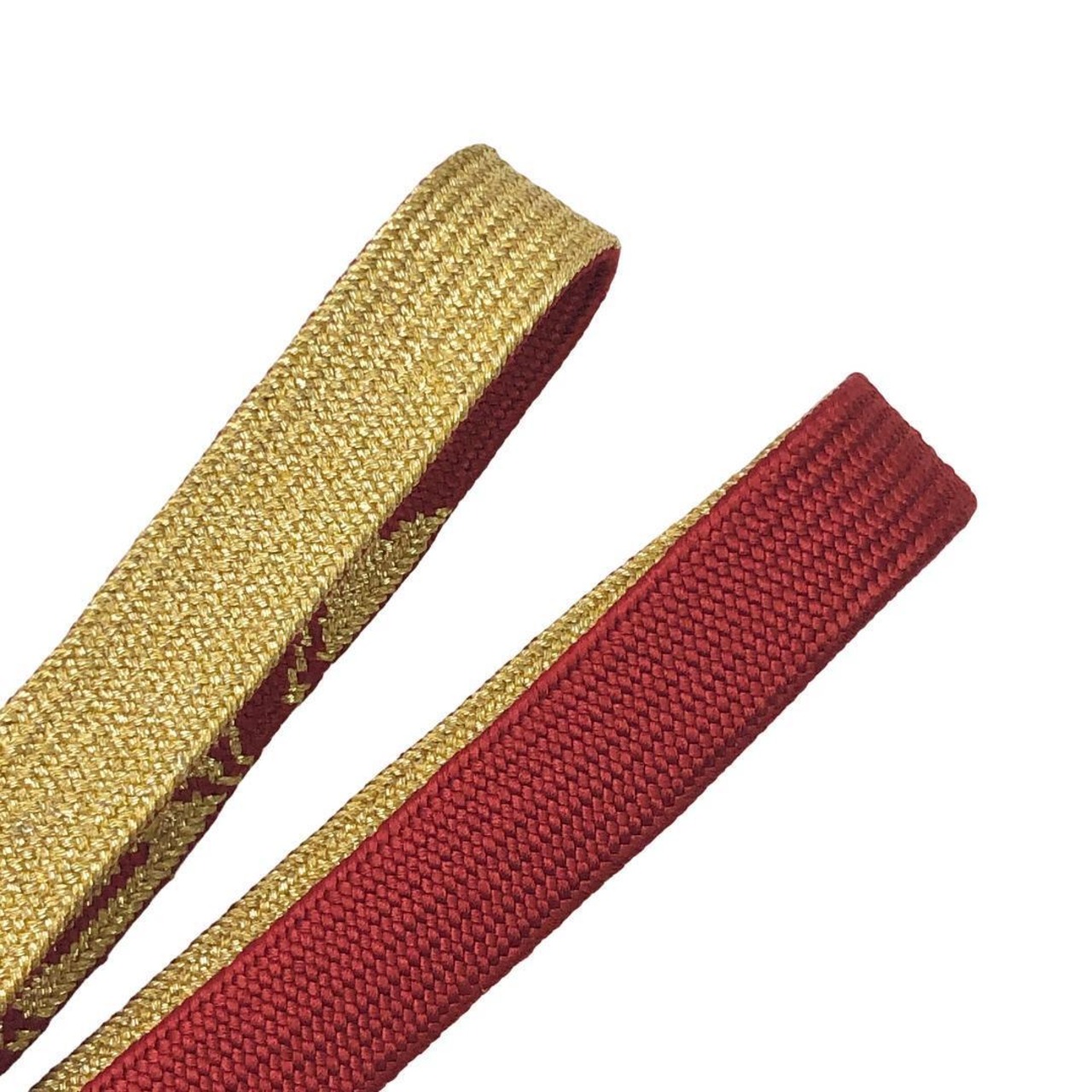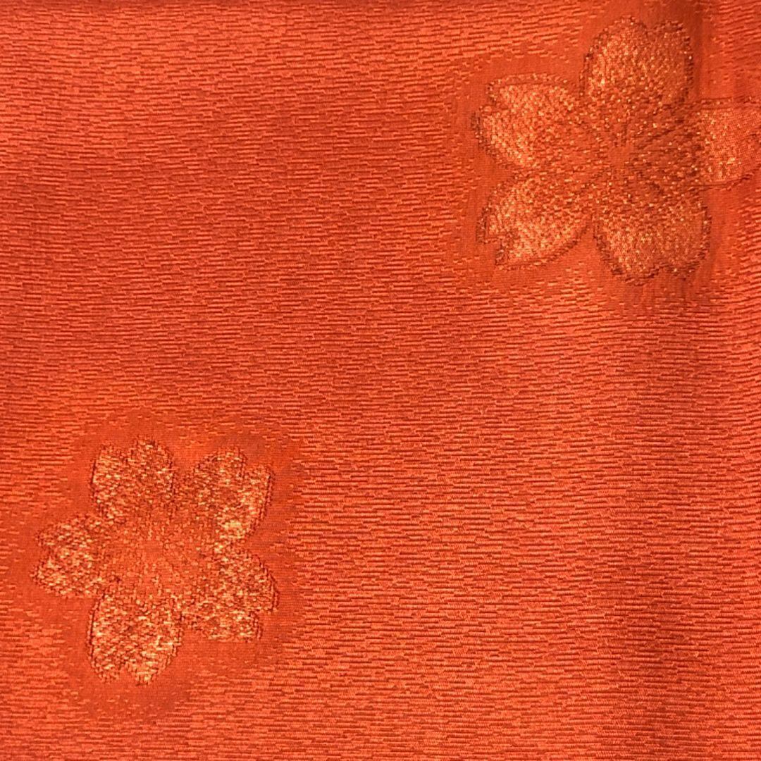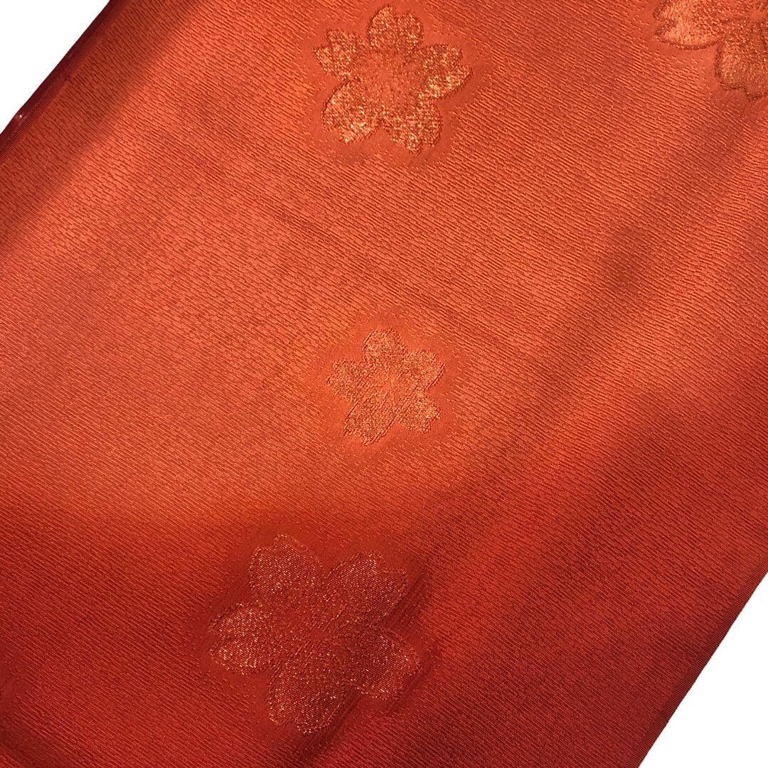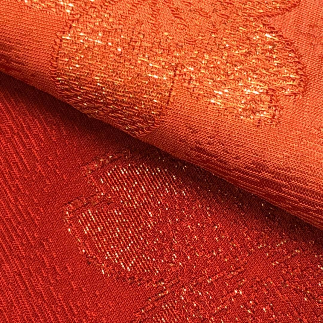 海老赤色のお色味に花模様がデザインされた帯揚げ、高麗組の素敵なお品でございます。