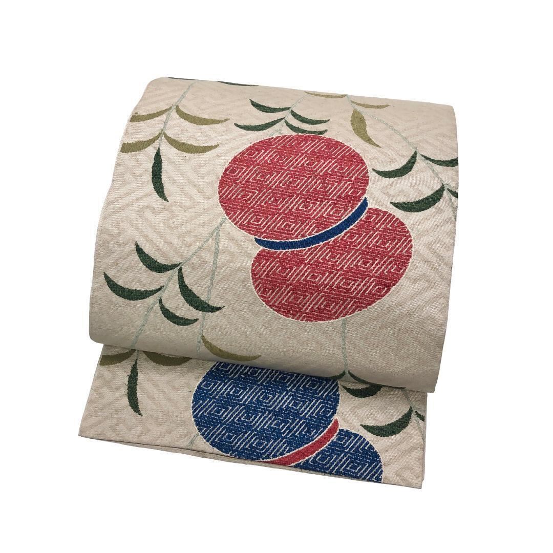 生成色のお色味の紬地に瓢箪、丸に入子菱 七宝繋ぎの柄裄がデザインされた雰囲気の良い素敵なお品でございます。