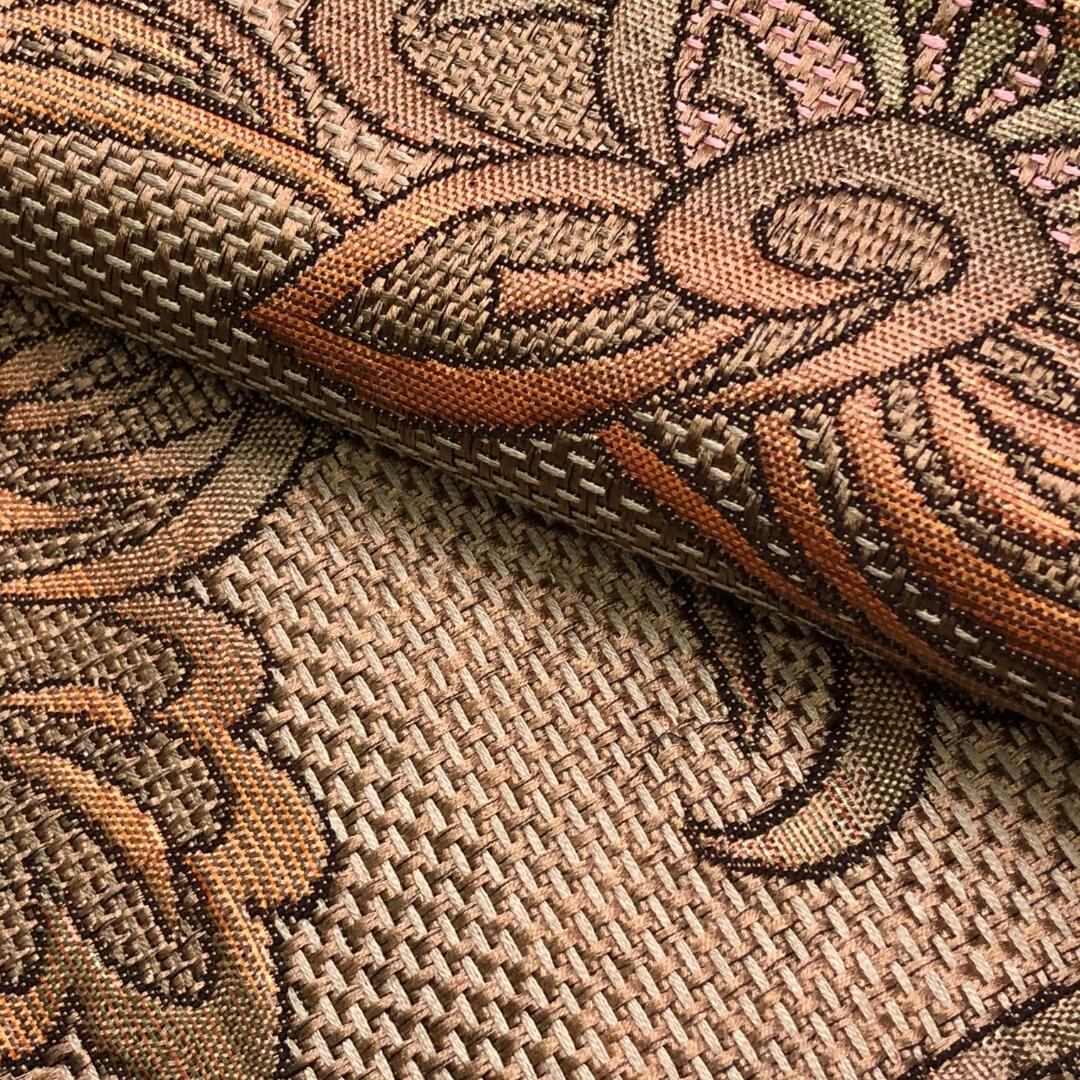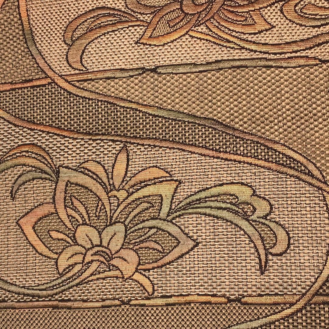古銅色の落ち着きのあるお色味に雰囲気の良い花模様の柄裄がデザインされた素敵なお品でございます。