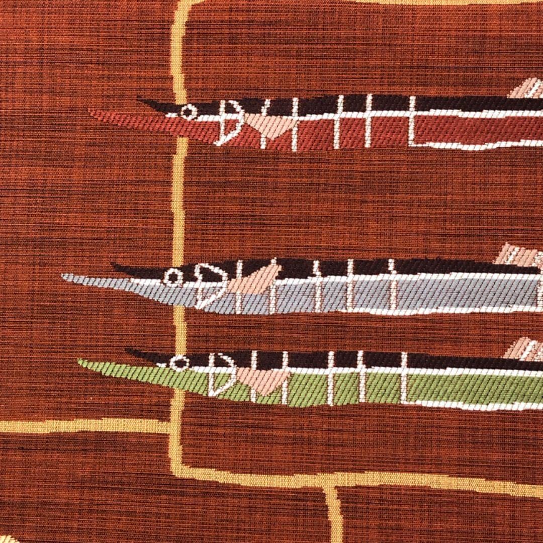名古屋帯 魚柄 花模様 牛血紅色 O-5337 着物 きもの kimono 和服 和装 中古 リサイクル着物 【送料無料】