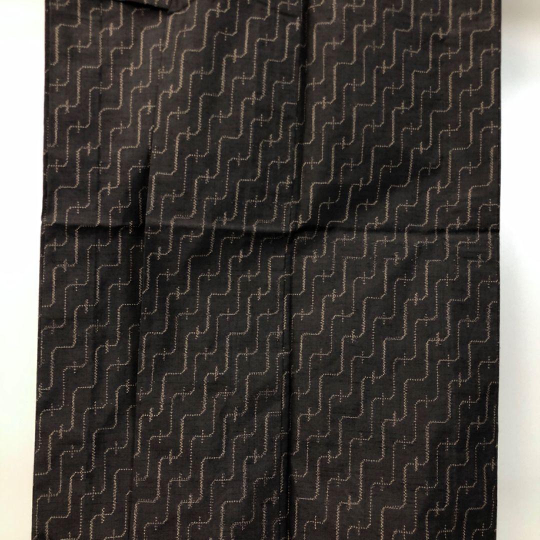 透け感のある涅色のお色味に抽象模様の柄裄がデザインされた素敵なお品でございます。