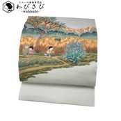 青白磁色のお色味に虫取りをしている子供の風景がデザインされた素敵な柄裄のお品でございます。