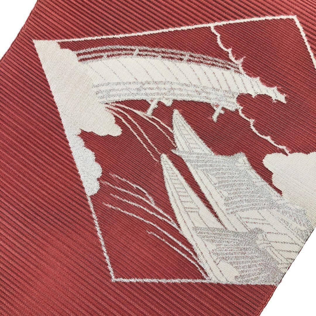 夏帯 名古屋帯 絽 菱形 橋に舟 海老赤色 小大丸お誂え O-5393 着物 きもの kimono 和服 和装 中古 リサイクル着物 【送料無料】