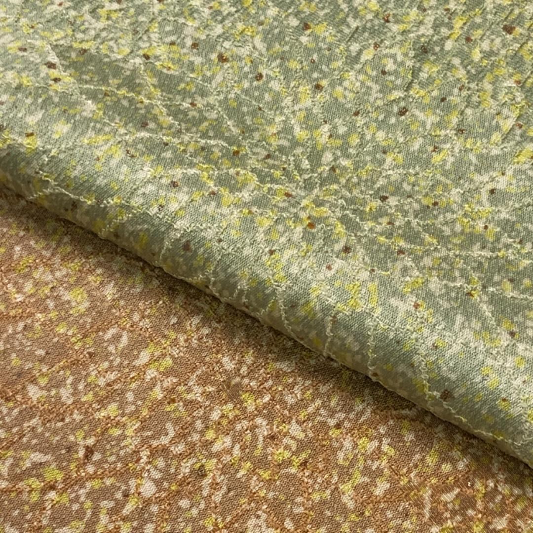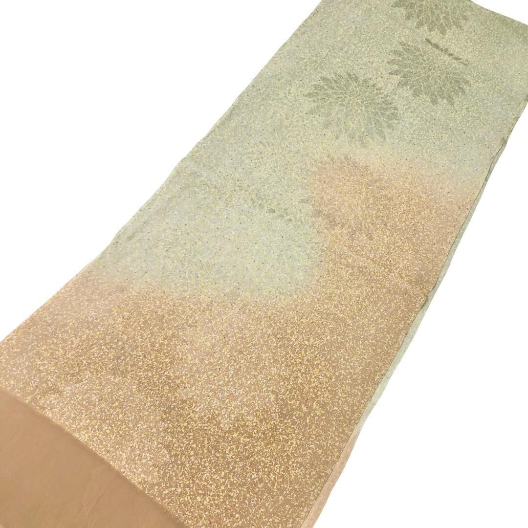 香色ベースのグラデーションのお色味に花模様の柄裄がデザインされた素敵なお品でございます。