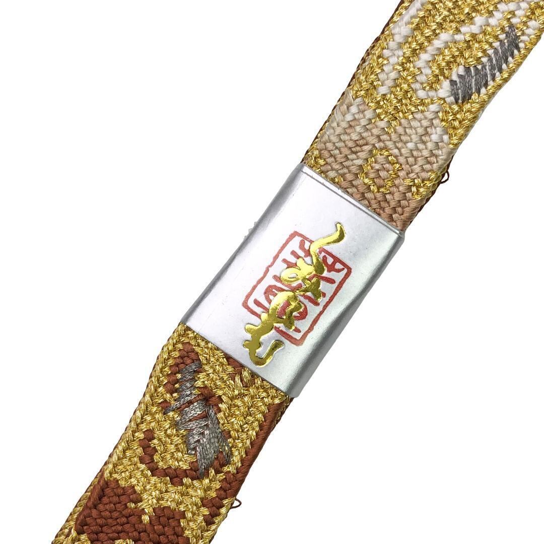 焦茶色ベースのお色味に抽象模様がデザインされた帯揚げ、高麗組の素敵なお品でございます。