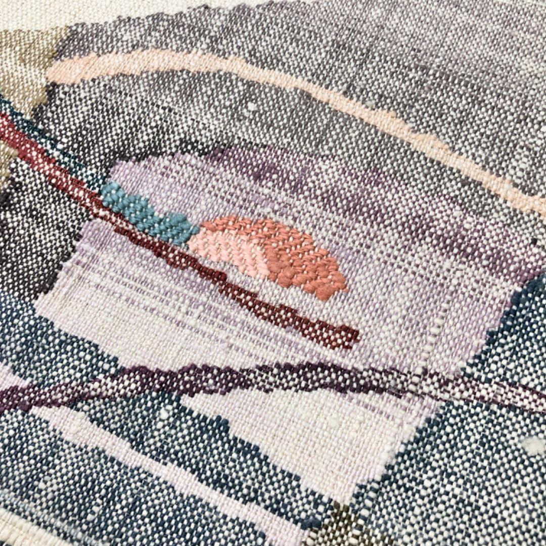 優しい色彩の雰囲気の良い抽象模様の柄裄がデザインされた手触りの良い真綿紬の素敵なお品でございます。