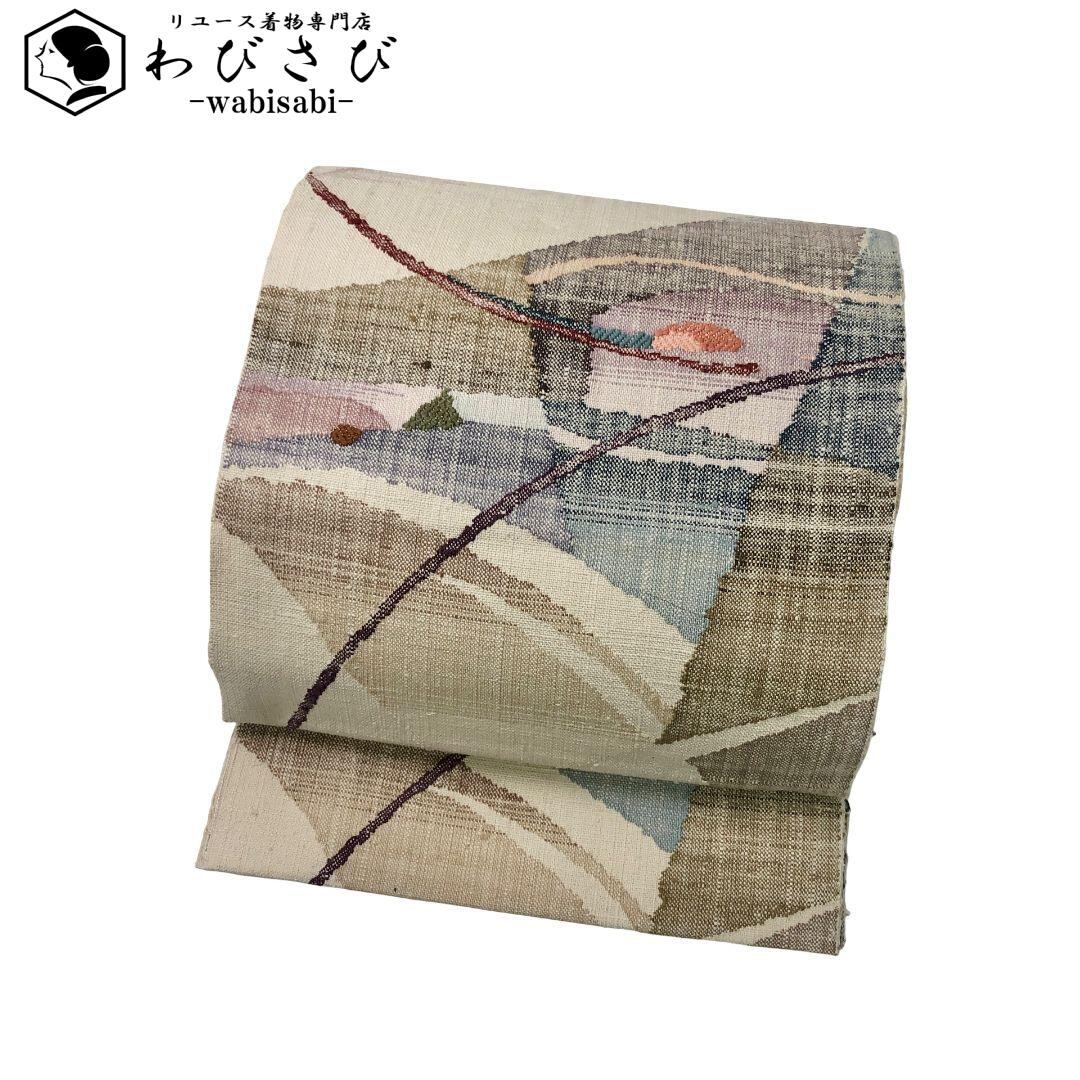 名古屋帯 真綿紬 雰囲気の良い抽象模様 O-5314 着物 きもの kimono 和服 和装 中古 リサイクル着物 【送料無料】