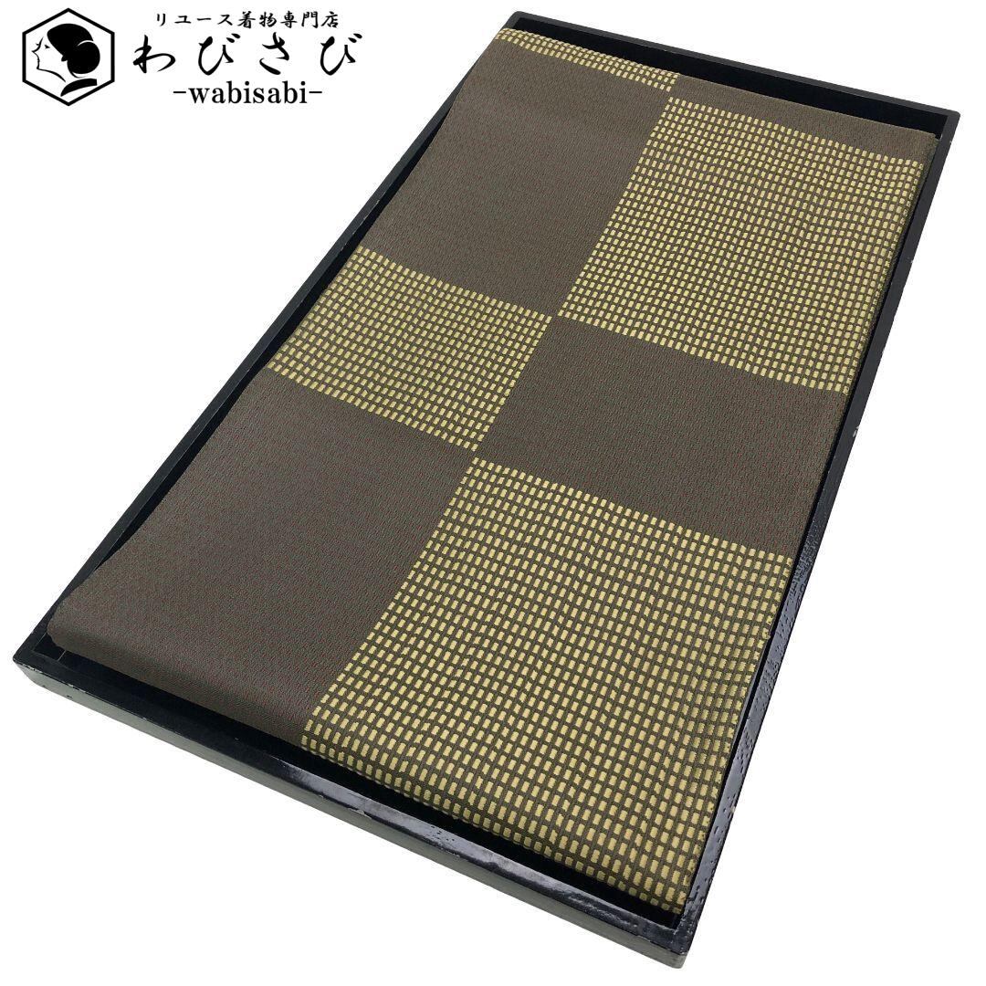 袋帯 格子柄 千歳茶色 ガード加工 O-5333 着物 きもの kimono 和服 和装 中古 リサイクル着物 【送料無料】
