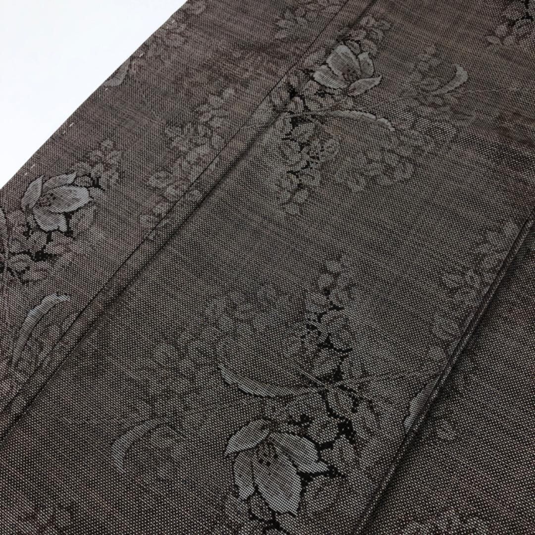 風合いの良い茶泥染のお色味に雰囲気の良い花模様の縦横の絣の柄裄がデザインされた素敵なお品でございます。