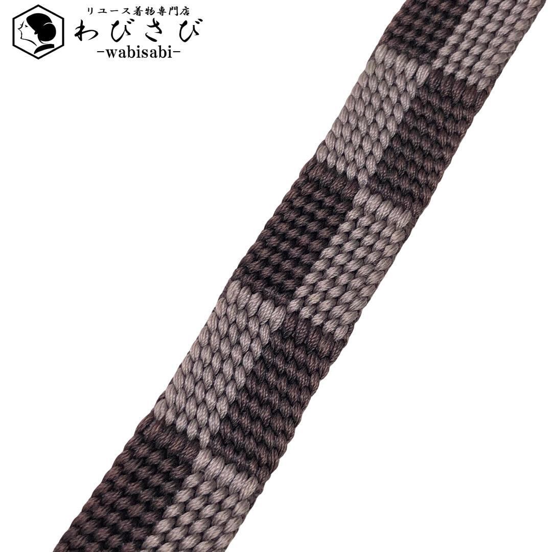 和装小物 帯締め 正絹 平組紐 組紐 市松模様 都鼠色 C-6319 着物 きもの kimono 和服 和装 中古 リサイクル着物 【送料無料】