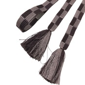 都鼠色ベースのお色味に市松模様の柄裄がデザインされた平組紐の素敵なお品でございます。