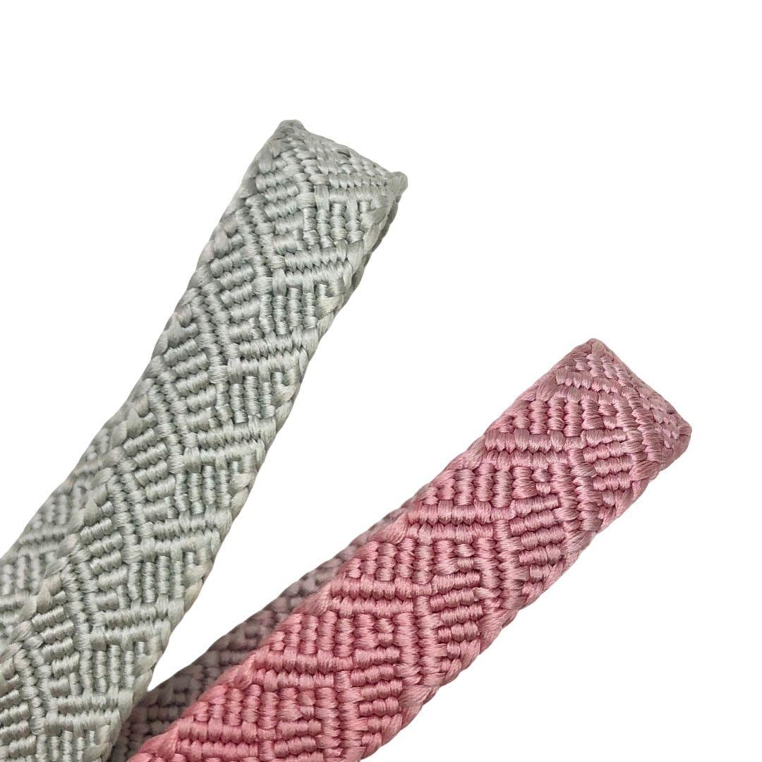 薄墨色と桃色ベースのグラデーションのお色味が素敵な平組紐のお品でございます。