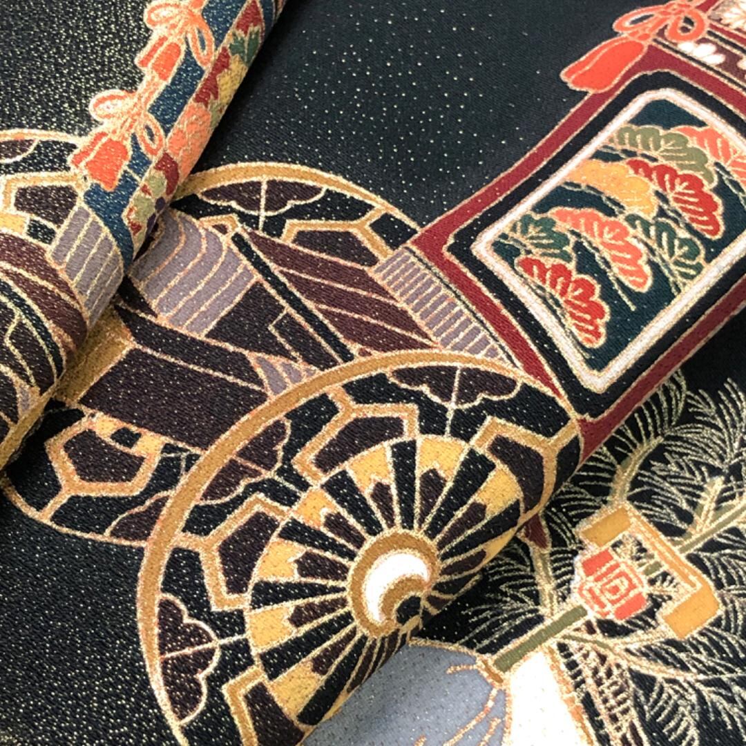 鉾に花草模様がデザインされた雰囲気の良い素敵な柄裄のお品でございます。