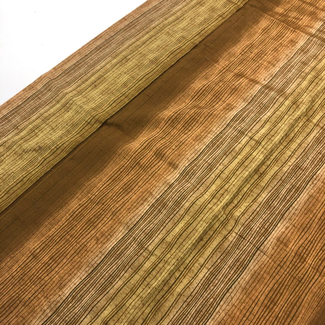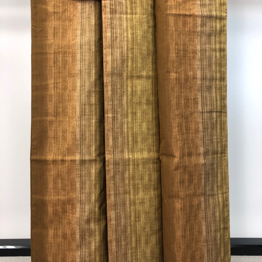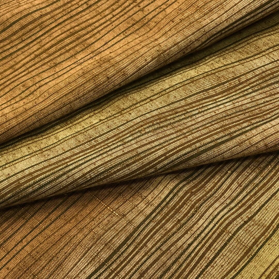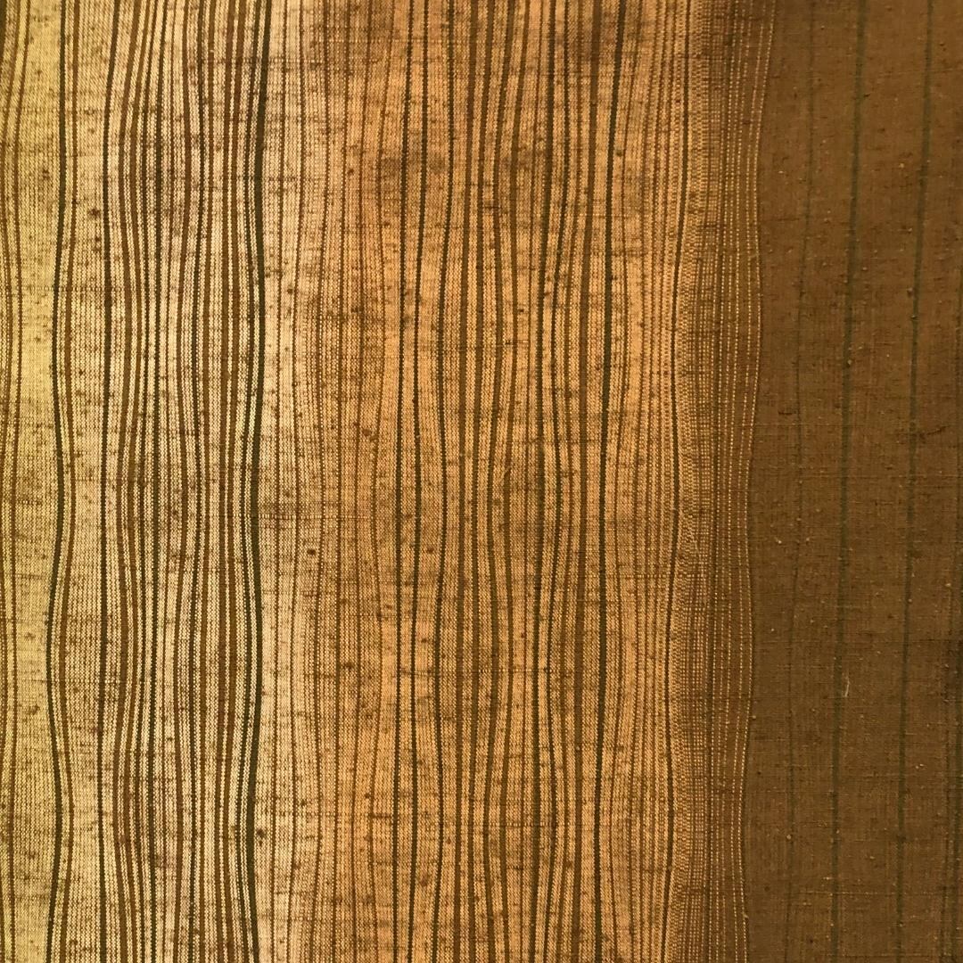 壁土色ベースの雰囲気の良いお色味に縦縞模様の柄裄がデザインされた素敵なお品でございます。