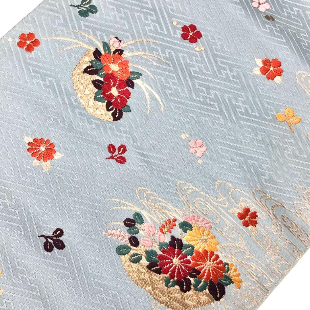 名古屋帯 華くらべ 小花模様 葉模様 波模様 淡水色 O-5383 着物 きもの kimono 和服 和装 中古 リサイクル着物 【送料無料】