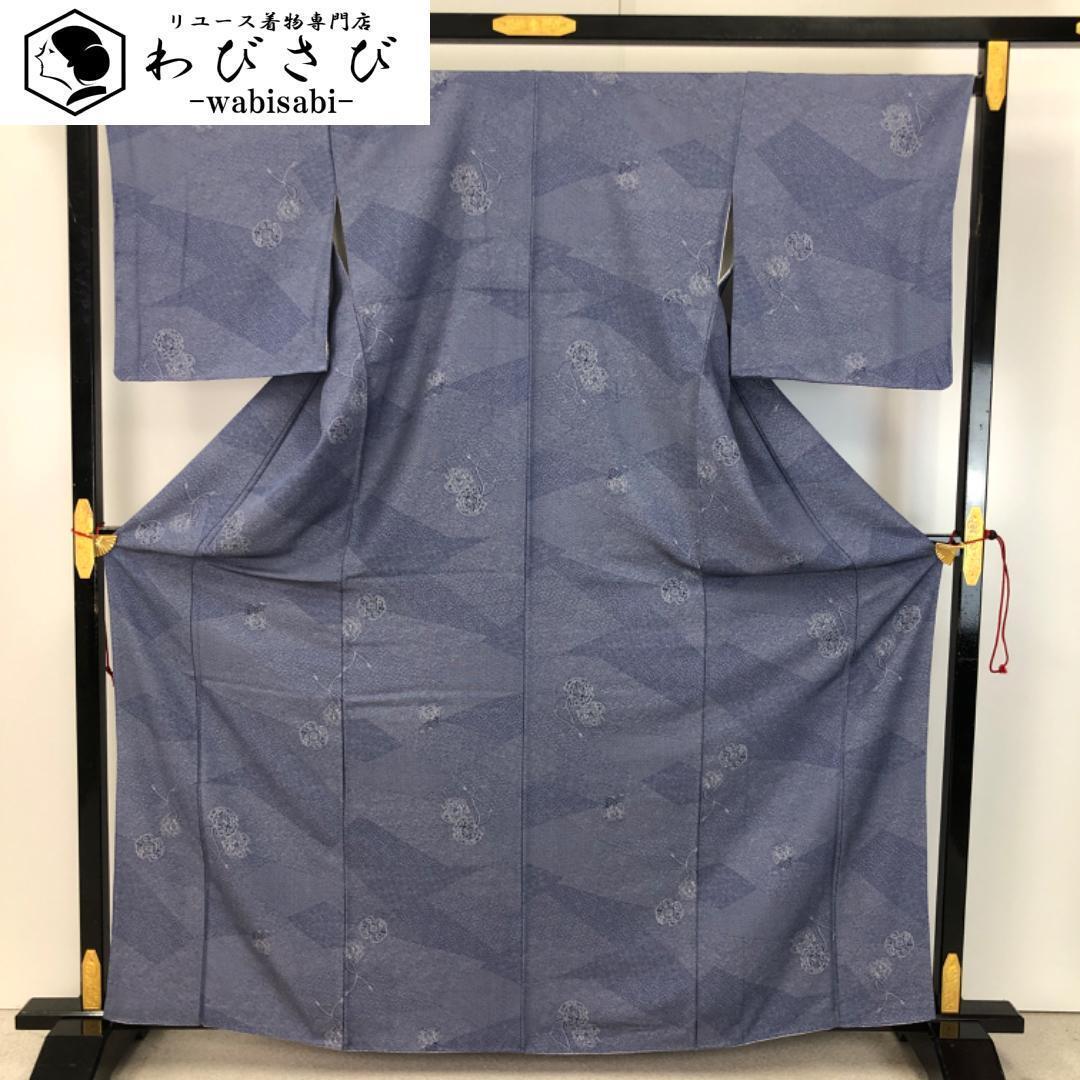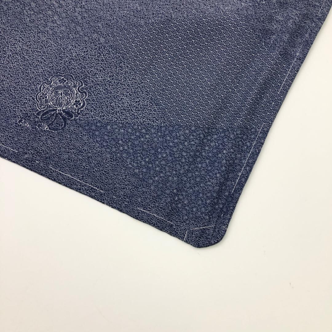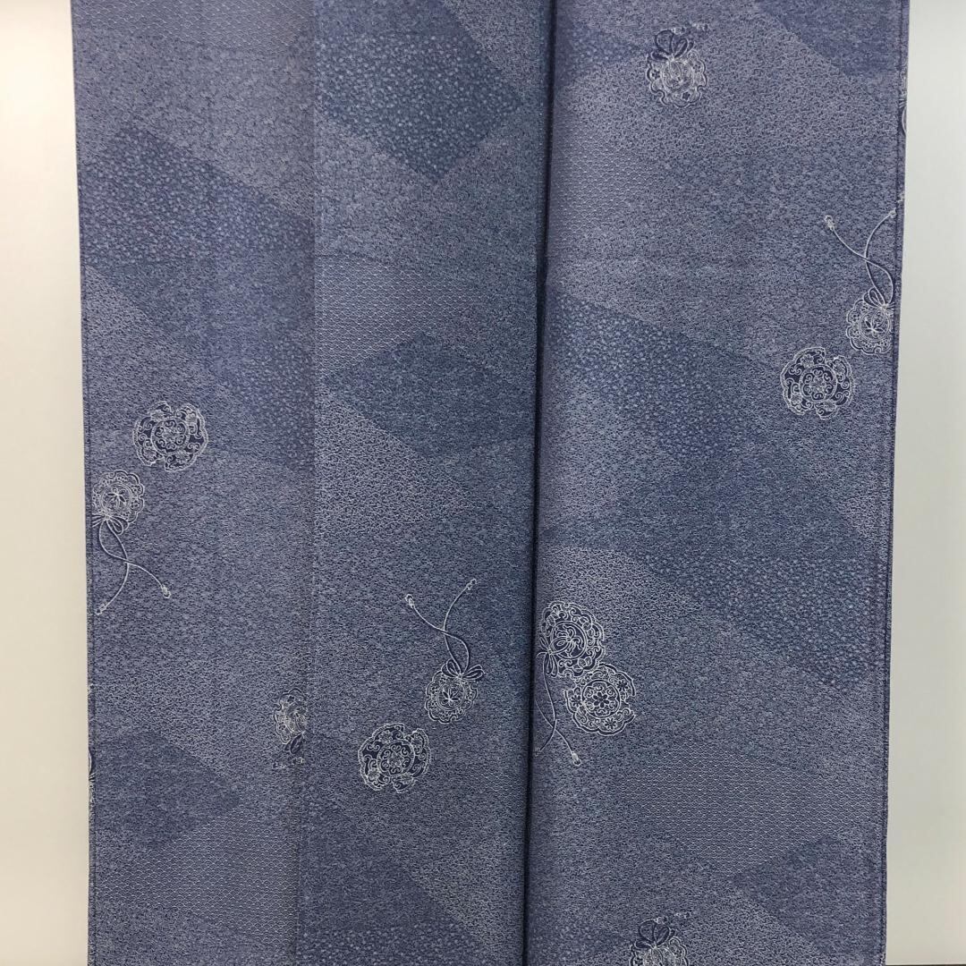濃ニ藍色のお色味に寄せ柄、銅鏡の柄裄がデザインされた素敵なお品でございます。